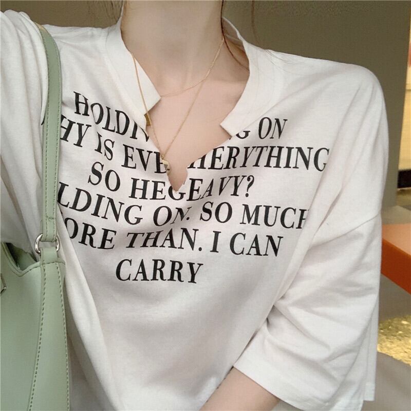 プリントVネックTシャツ シャツ ルーズトップス レディースサマーソリッド カラー 夏物 ソリッドカラー Xiaofeijia24913805770