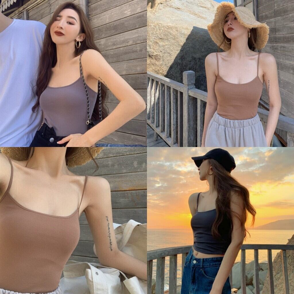 サマーソリッド カラーノースリーブショートバックトップス 夏物 ソリッドカラー Xiaofeijia21528777386