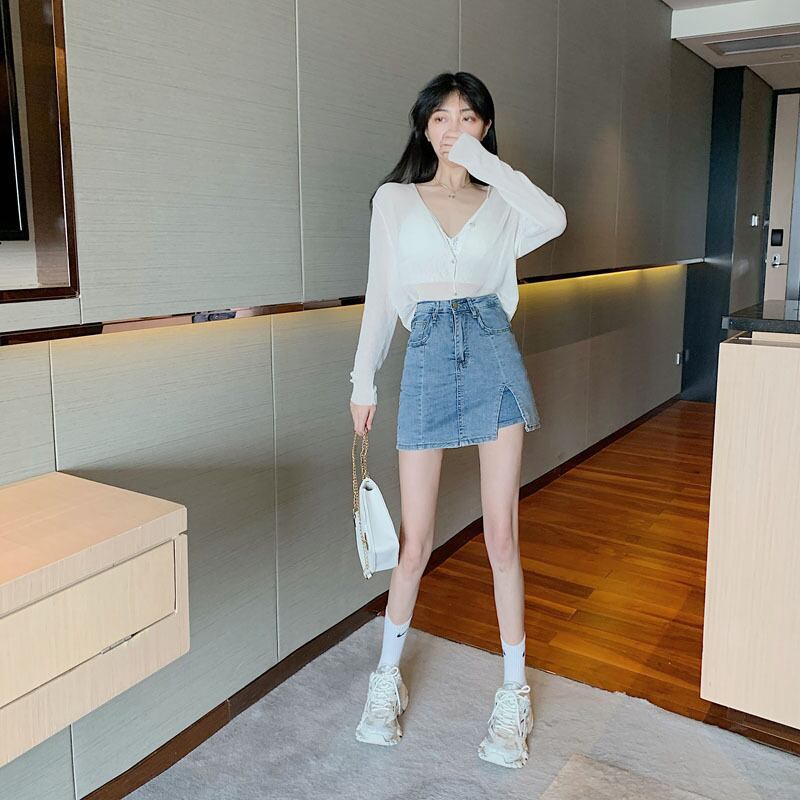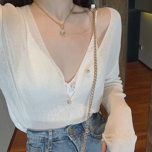 サマーVネック薄手ニットトップス スカート 夏物 Xiaofeijia618535083