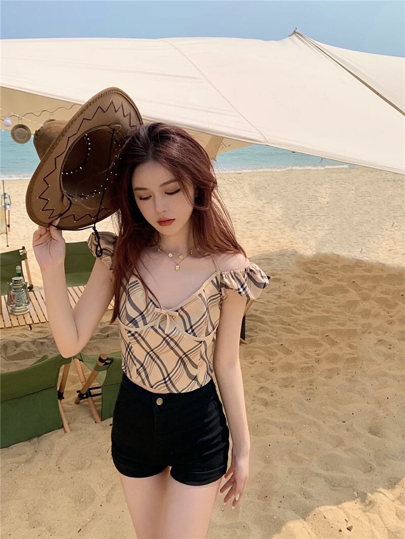 パターンレッドスタイルスリムショートトップス Xiaofeijia41774499532