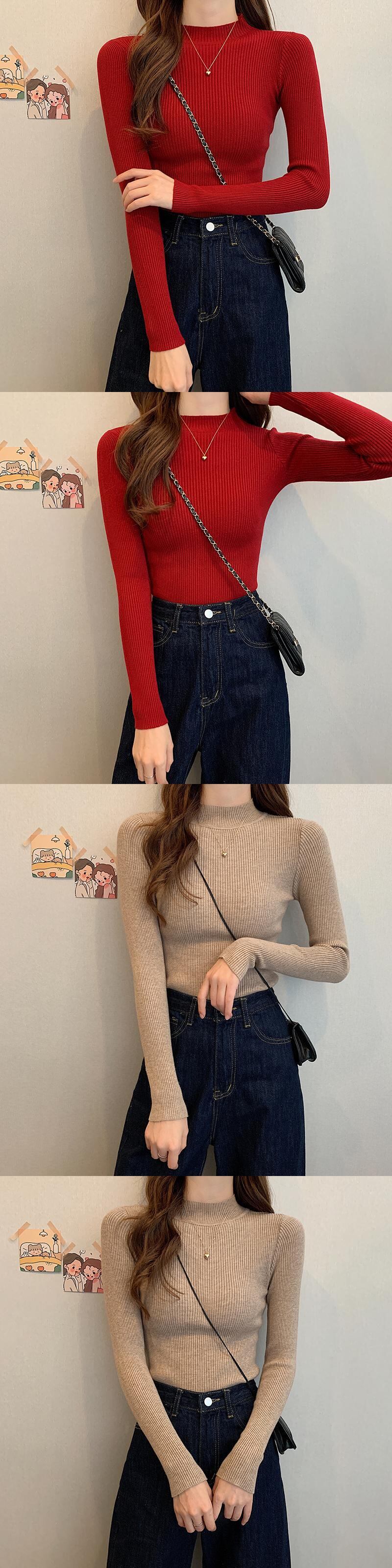 スプリングオータムシャツ スリムセーター ニットトップス ロング 春物 秋物 Xiaofeijia59440243819