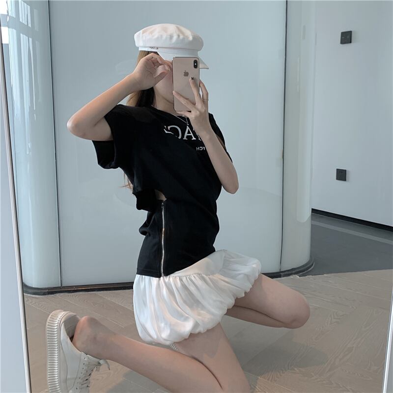 スカート Flowerデザイン AラインショートジッパースリットプリントTシャツ サマー 夏物 フラワーデザイン ステッチ Xiaofeijia99443319865