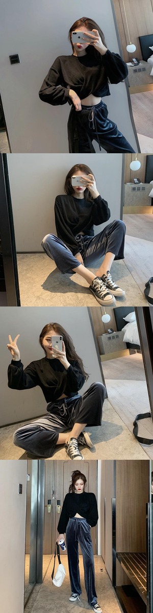 レディースオータムセーター トップス ベルベットパンツ 秋物 Xiaofeijia82277312127