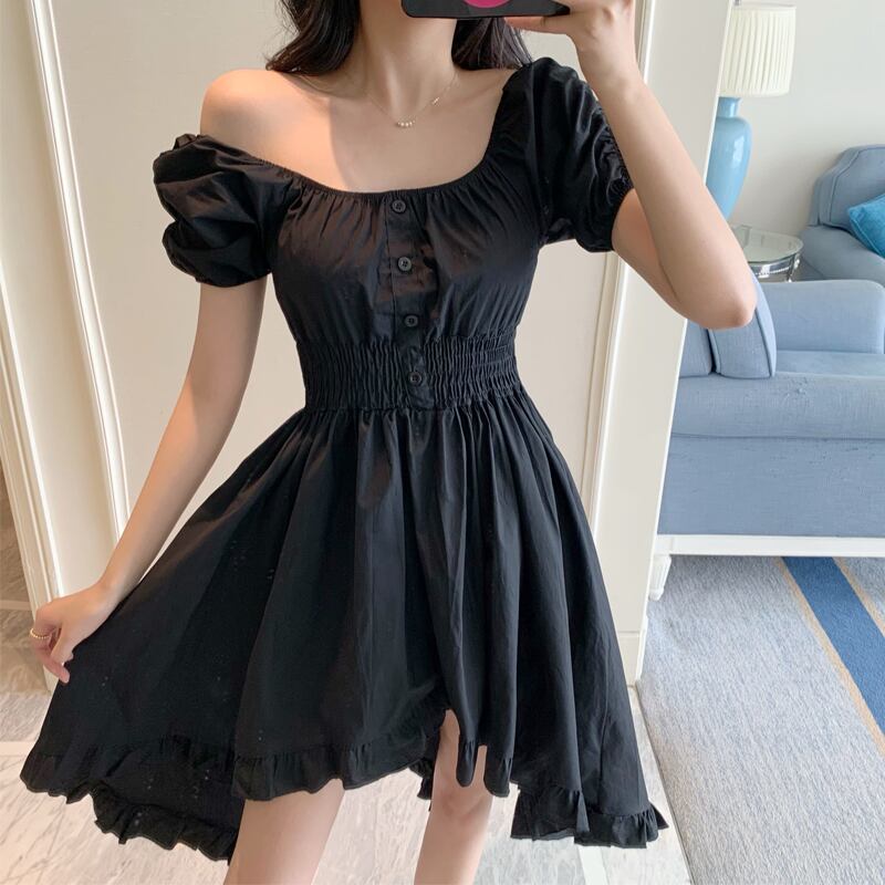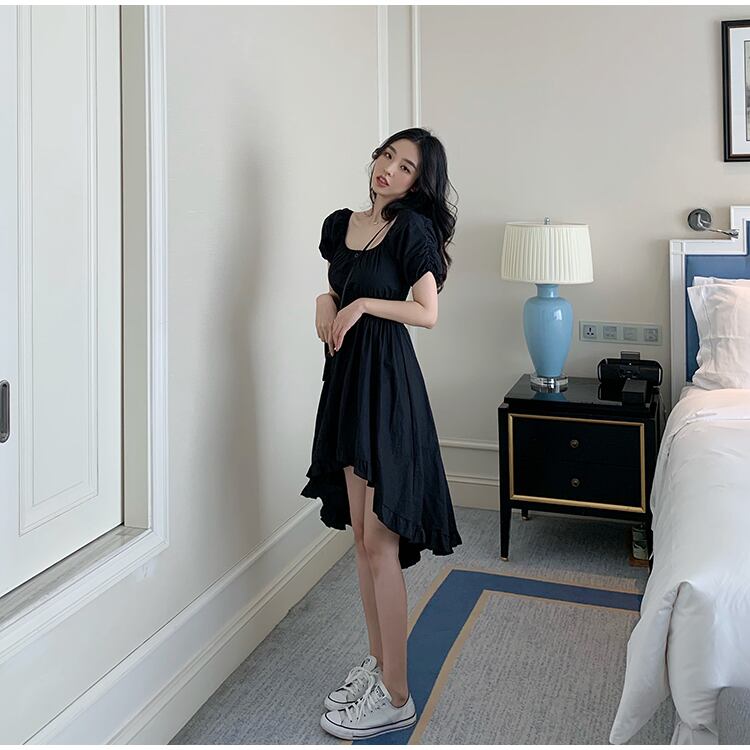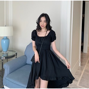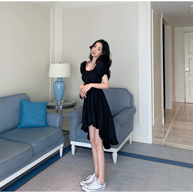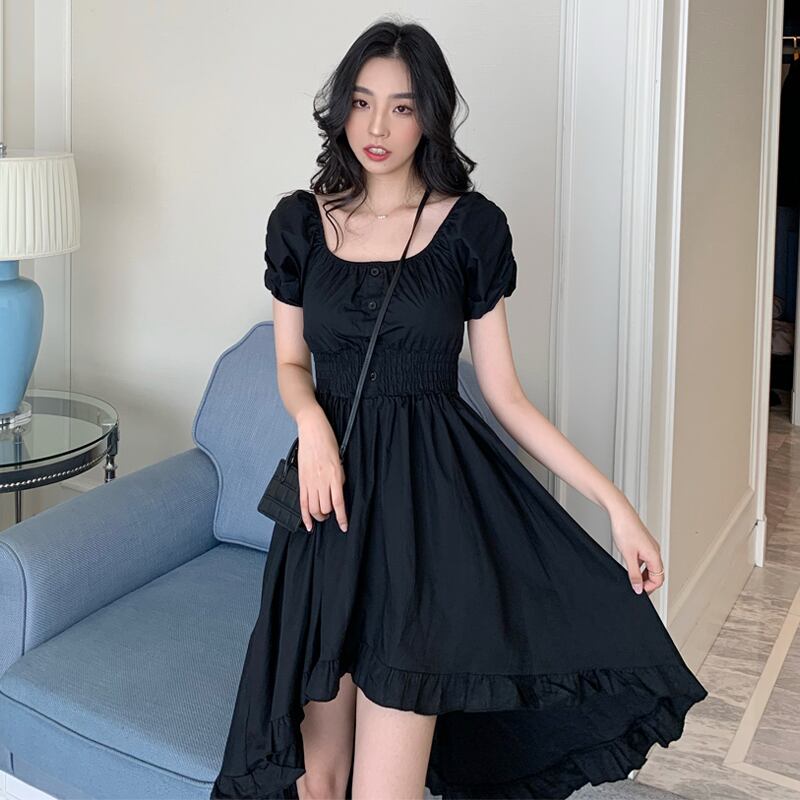 スタイルドレス ショートロングブラックスカート カラーウェスト スクウェア Xiaofeijia43063075105