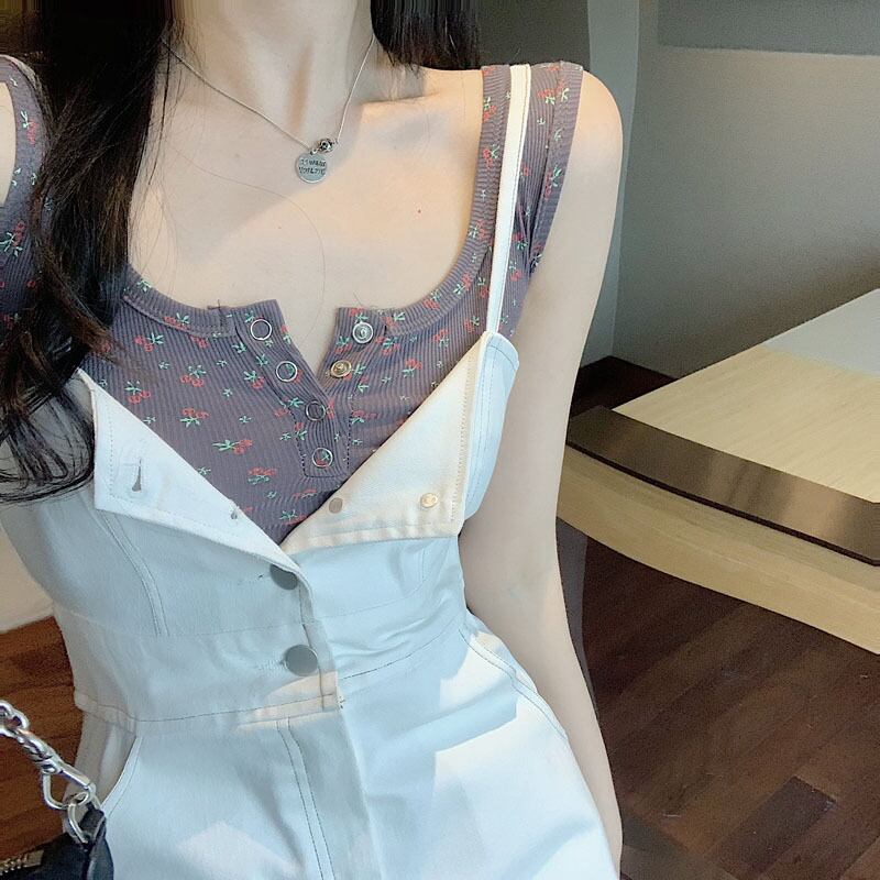 サマースリムショートドレス ボタン 夏物 Xiaofeijia22442698882