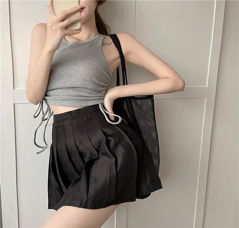 ギャザークロップドノースリーブタンクトップトップス Xiaofeijia72451986842