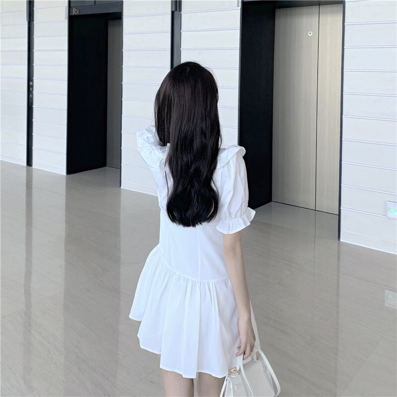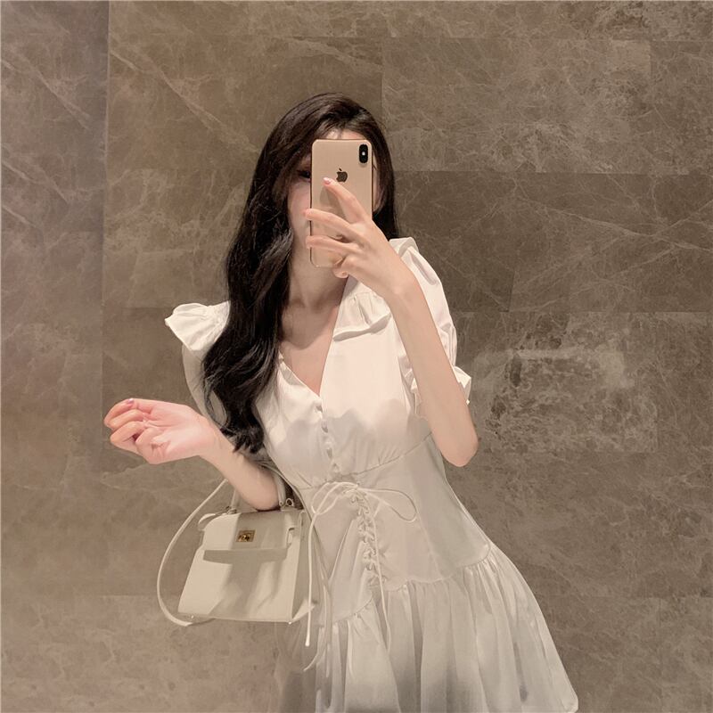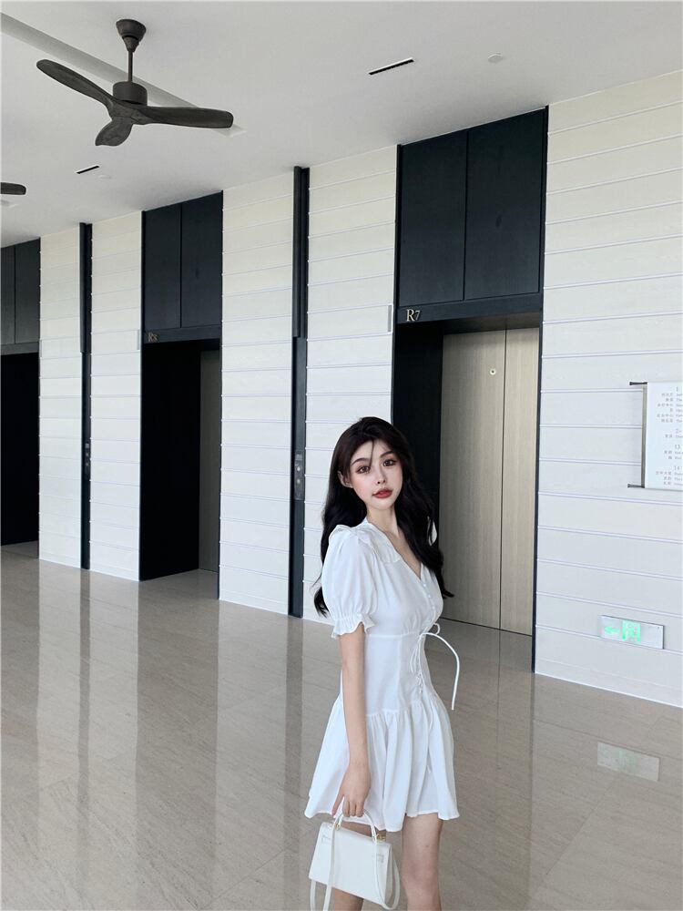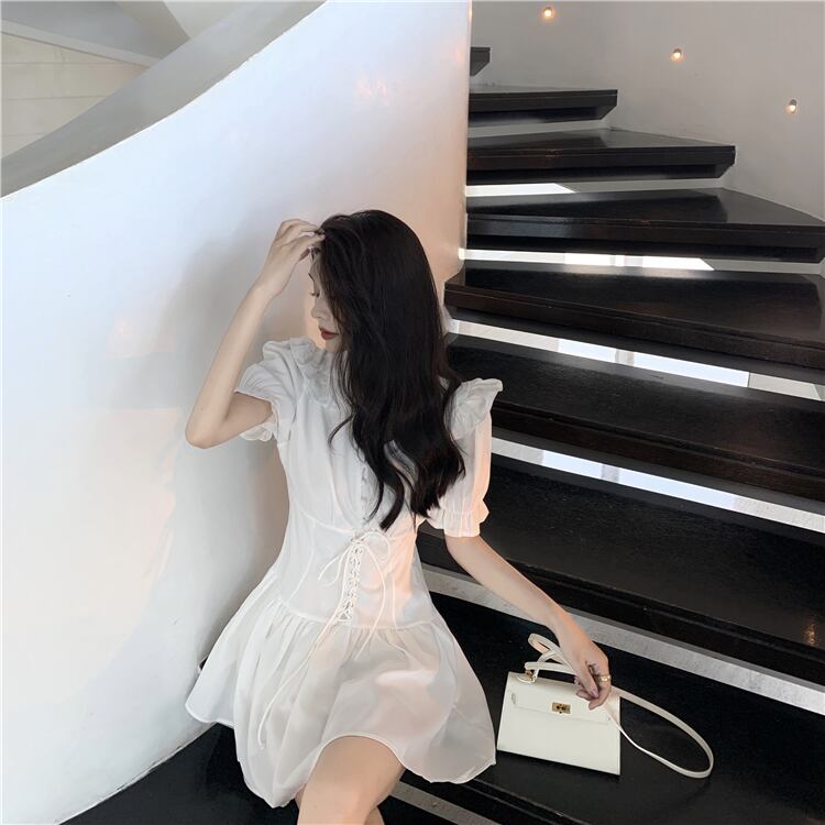 スタンダードラッフルドレス レトロ レース レースアップ Xiaofeijia50376565028