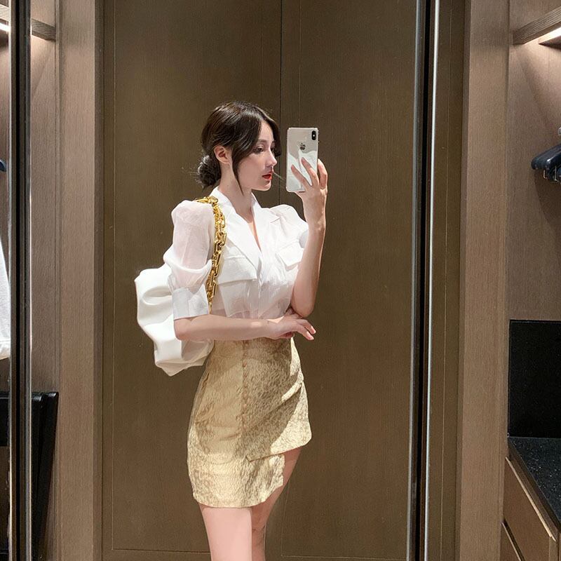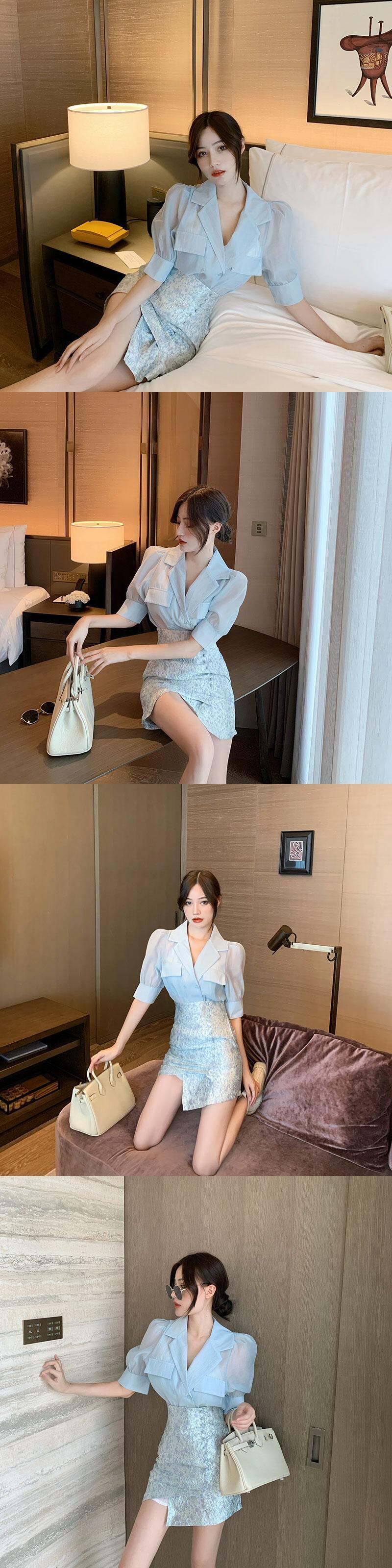 ブルーシャツ ショートスカート スリーブ Xiaofeijia36603021017