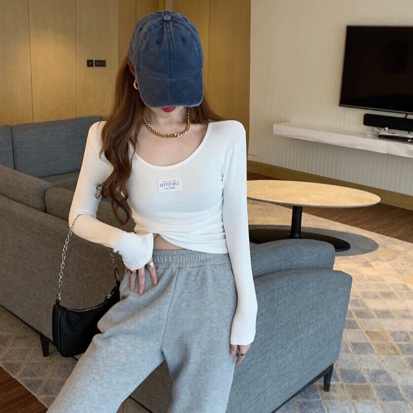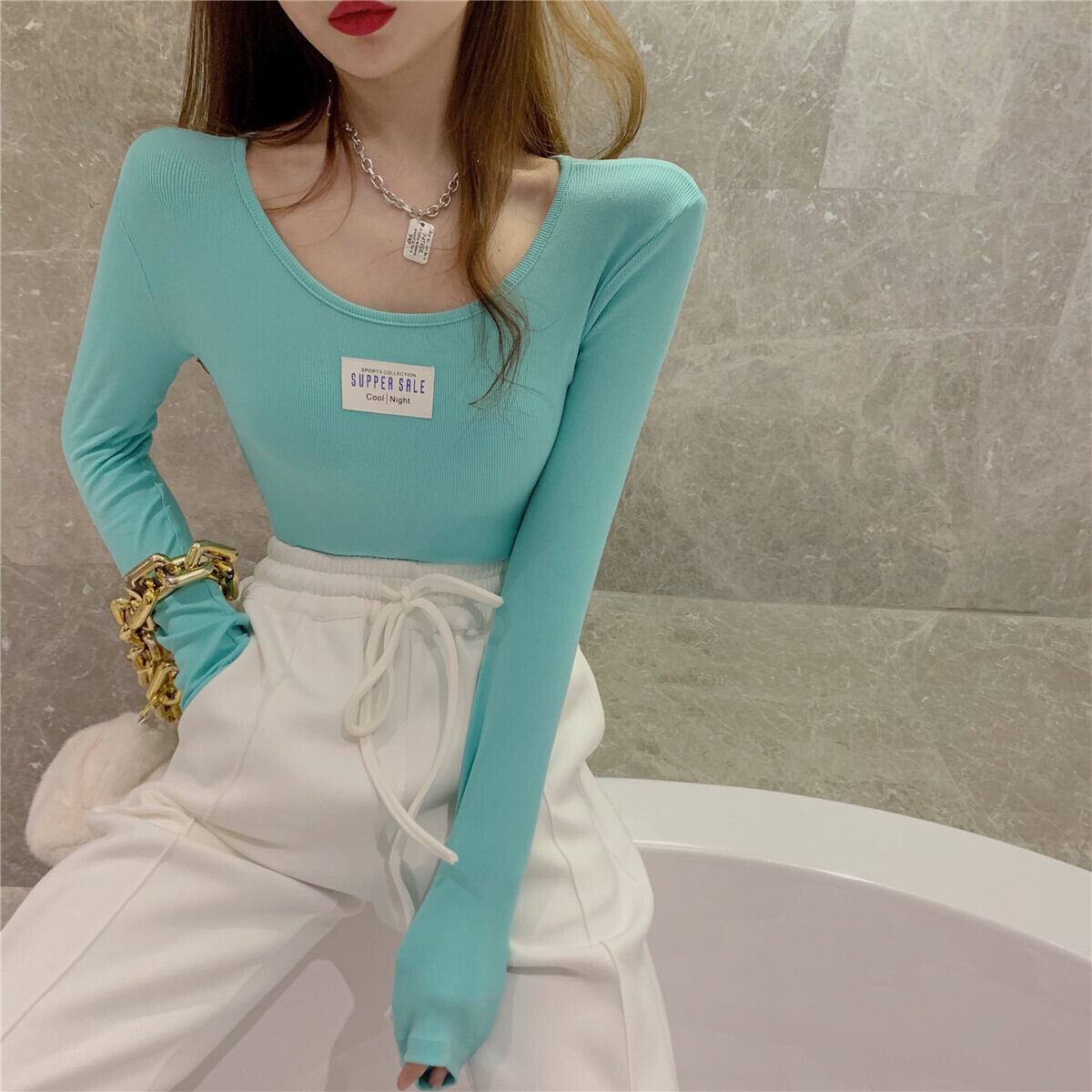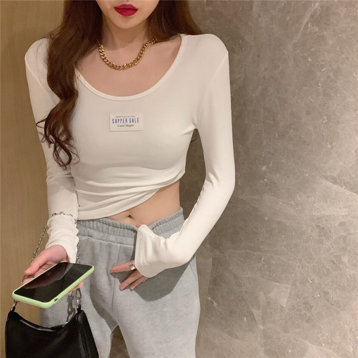 スリムTシャツ シャツ トップス スプリングショートレディース ロング 春物 Xiaofeijia17702028588