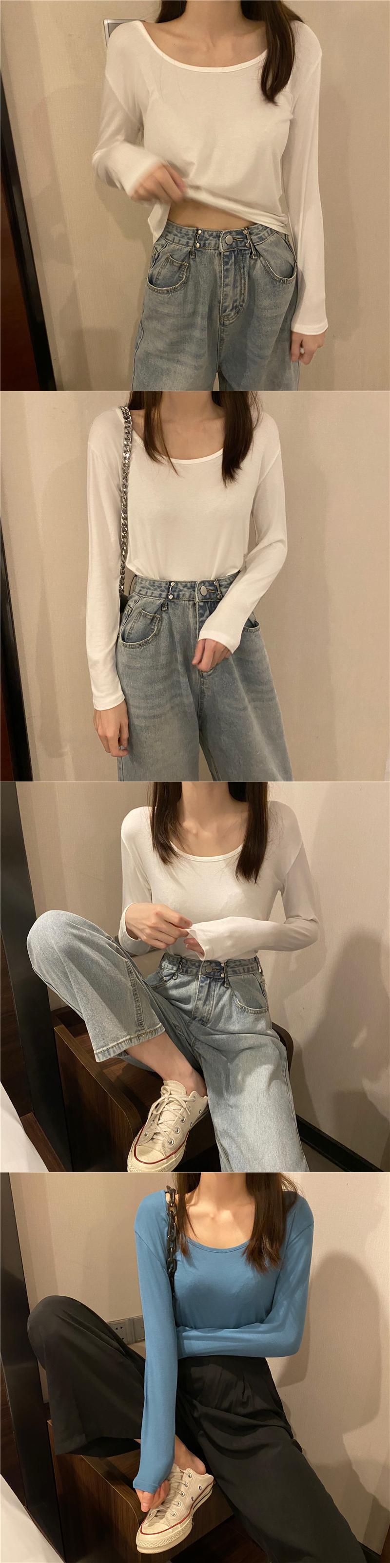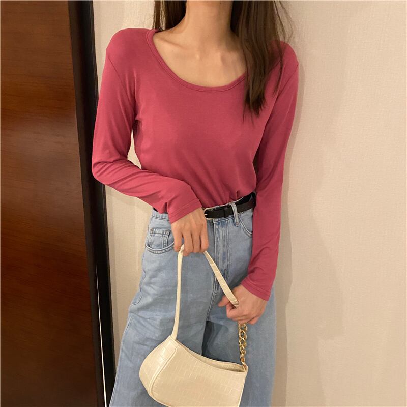スプリングソリッド カラーラウンドネックTシャツ シャツ プルオーバー トップス ロング 春物 Oネック ソリッドカラー Xiaofeijia9855650152