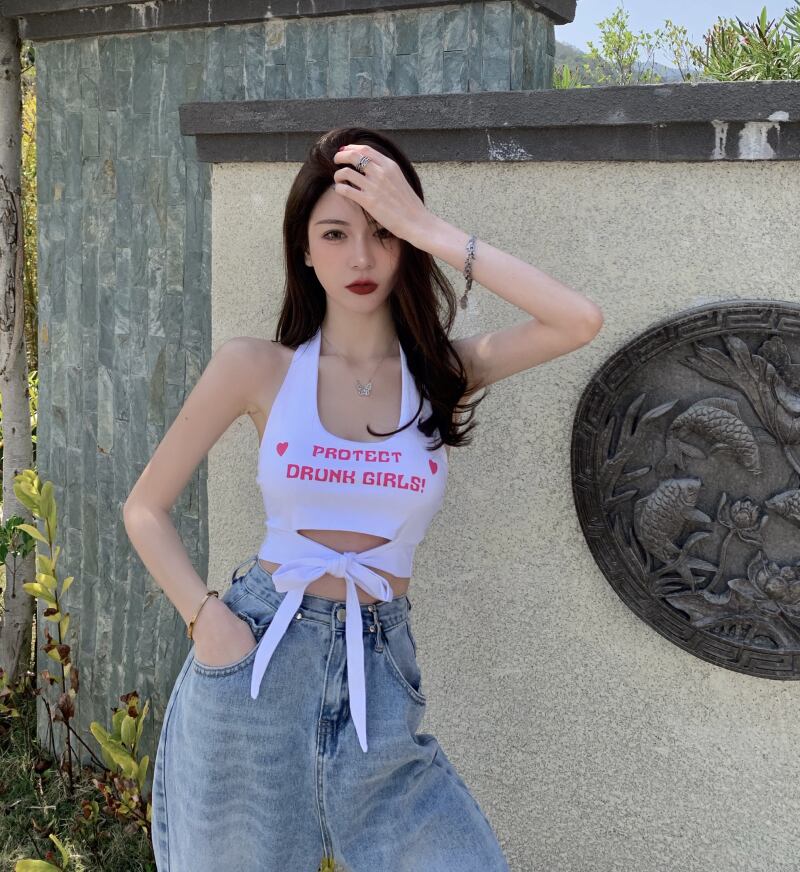 サマープリントショートバックホルタートップス 夏物 Xiaofeijia16310737529