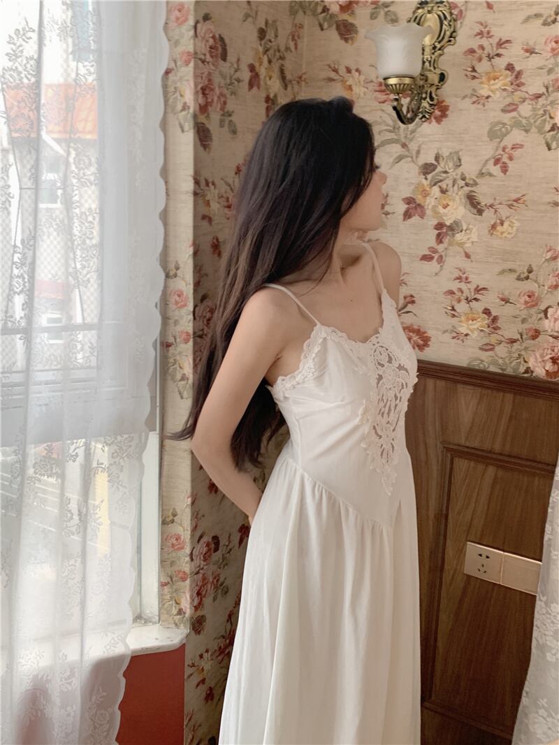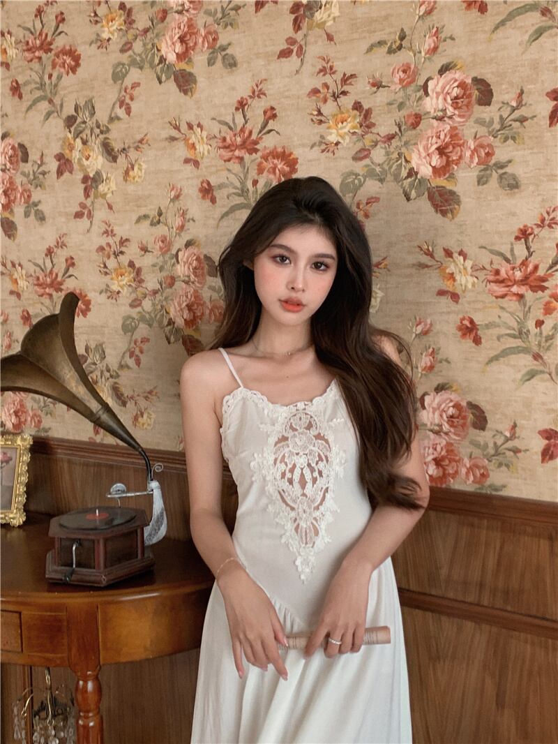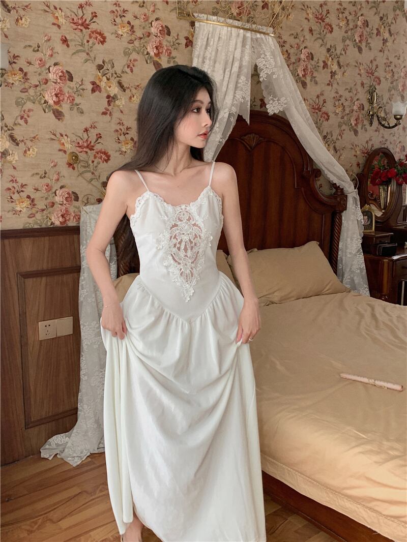 ホワイトスタンダードレースドレス レトロ ステッチ Xiaofeijia47740403276