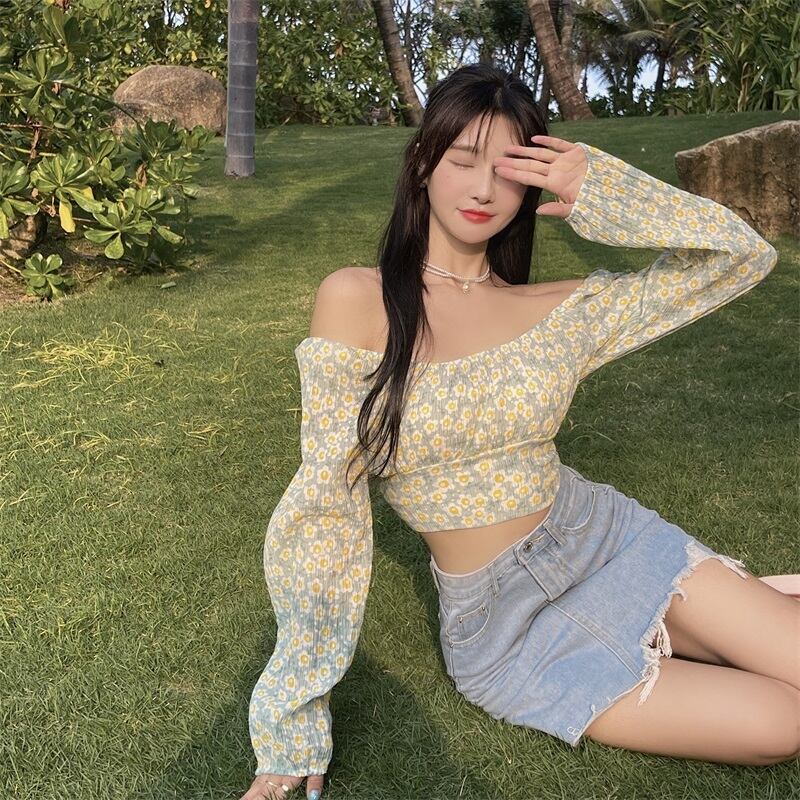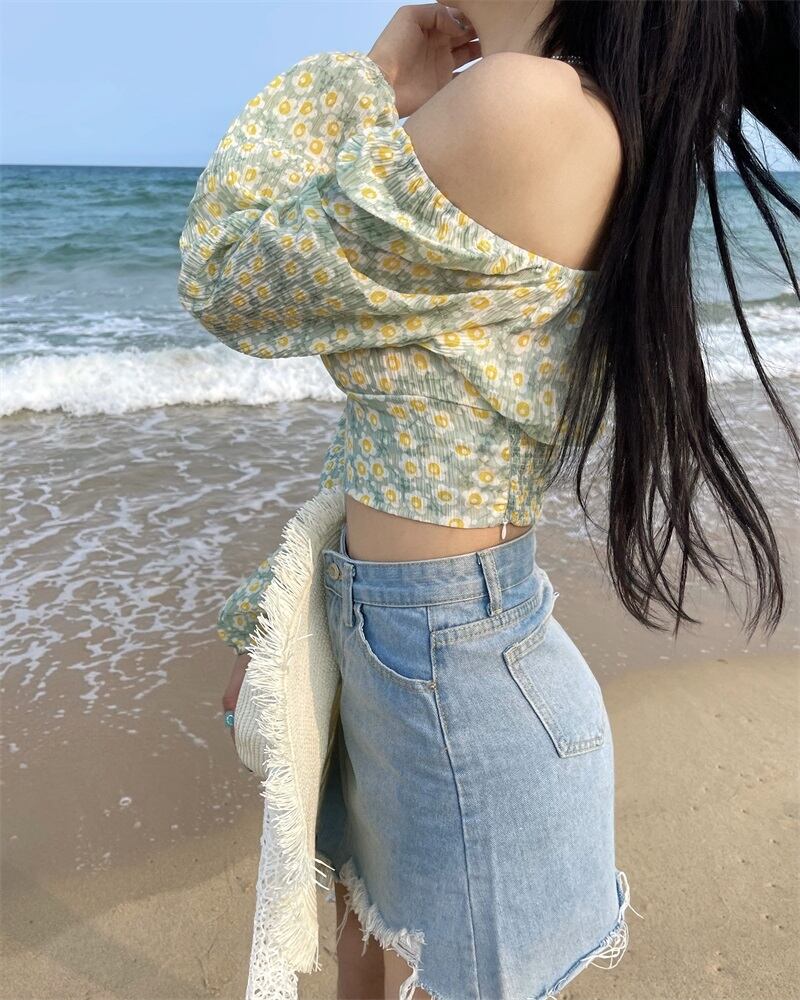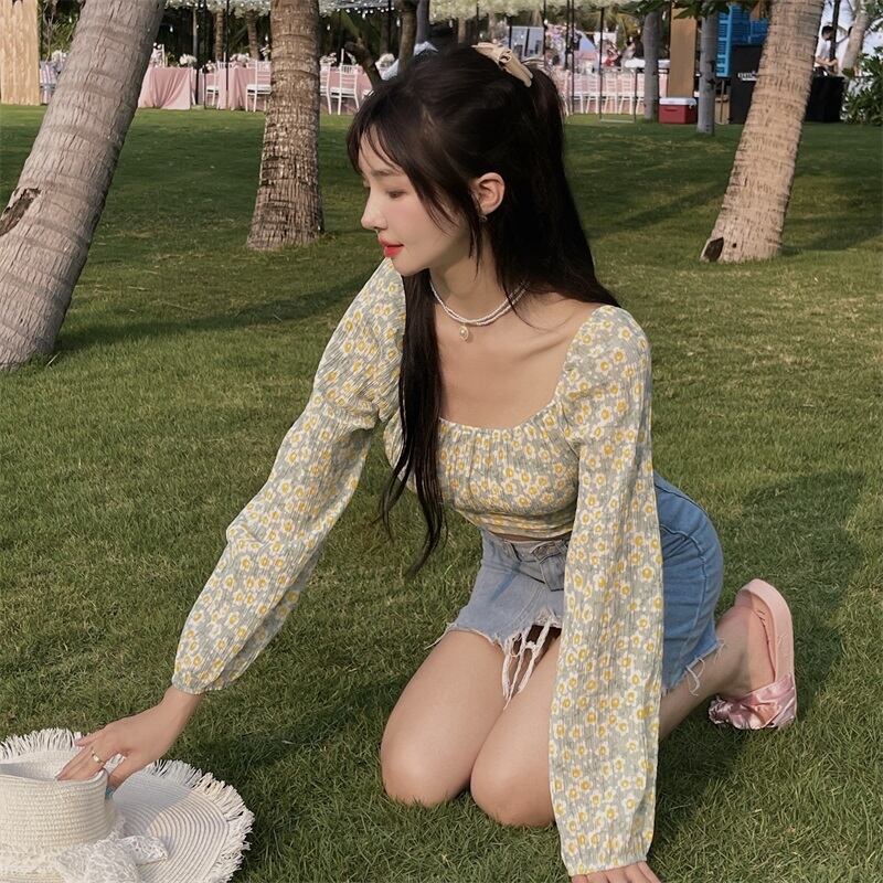 フローラルシャツ スプリングサマースタイルストレッチウェストトップス エラスティック 伸縮 春物 夏物 花柄 Xiaofeijia83609906884