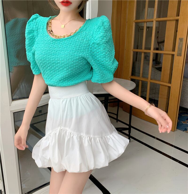 スリーブショートハイウェストサマー 夏物 スカート Tシャツ チェーン Xiaofeijia40852683258