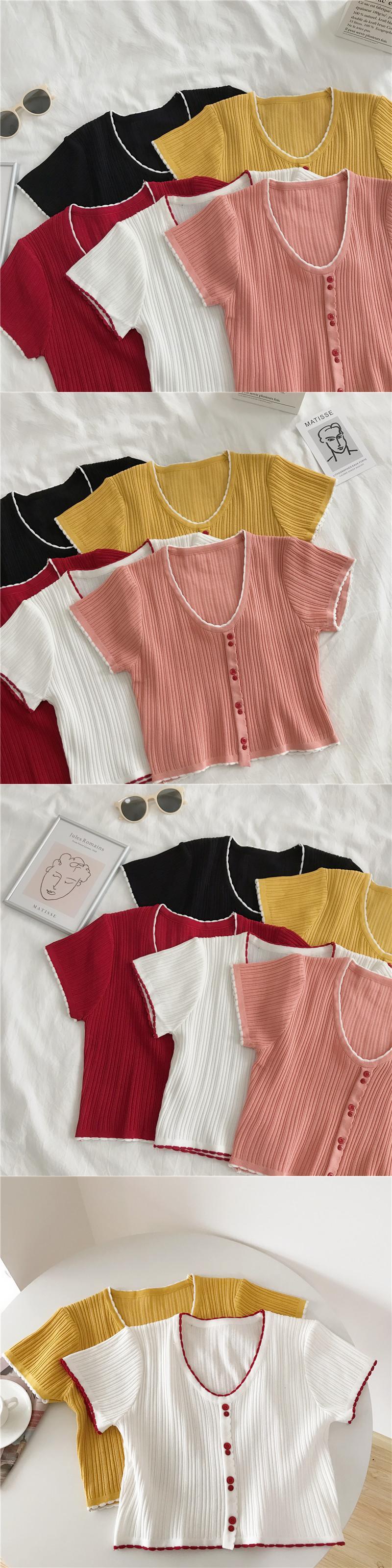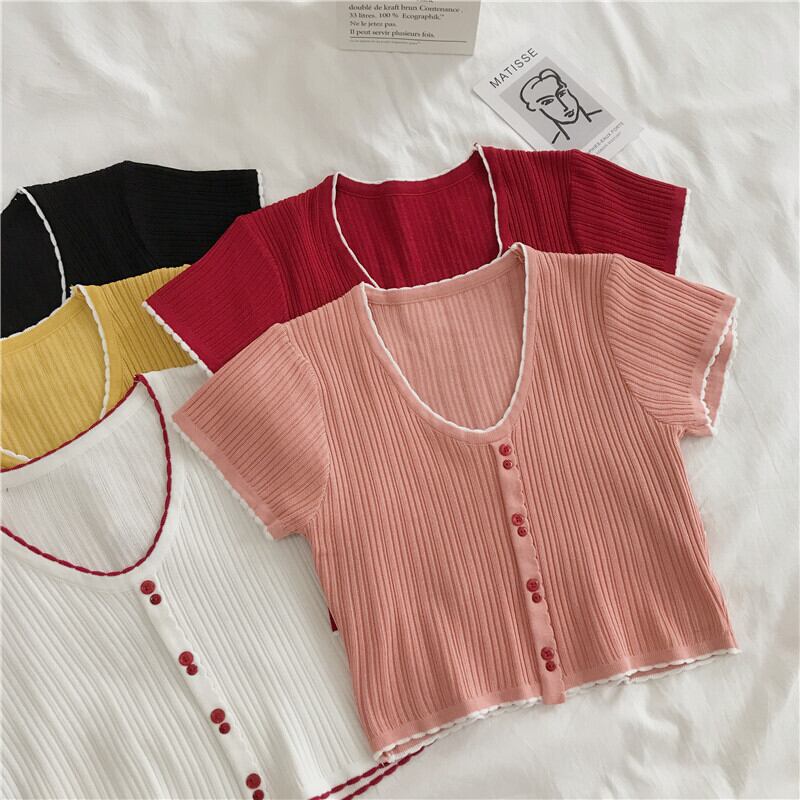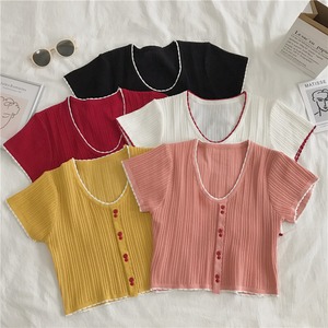ニットセーター スプリングサマースリムショート薄手プルオーバー トップス 春物 夏物 Xiaofeijia45089439638