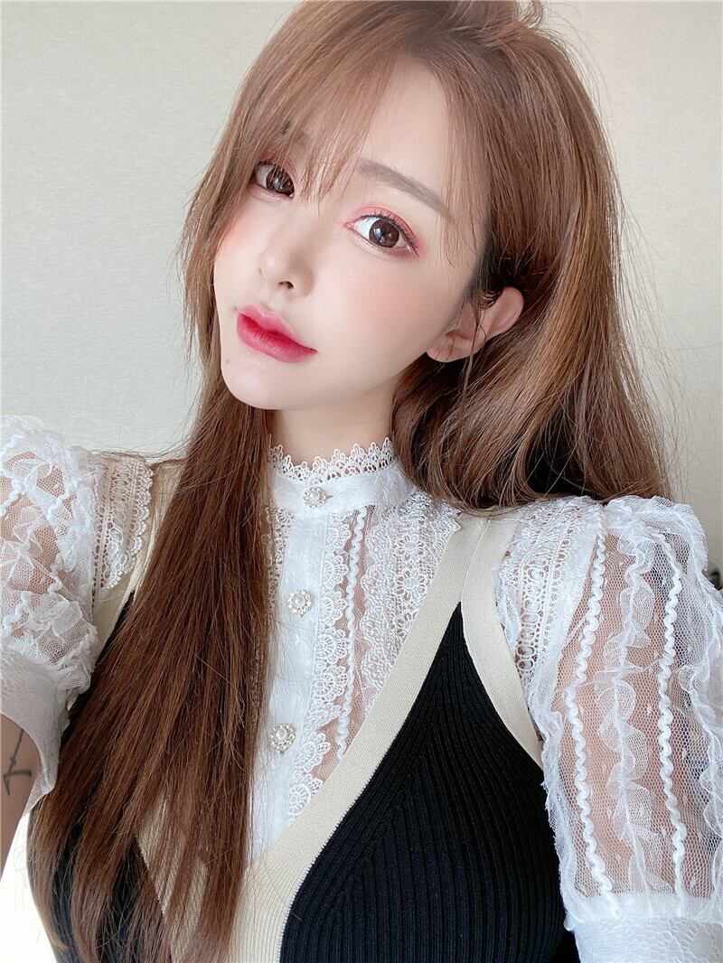 サマーVネックニットドレス レースシャツ レディース 夏物 Xiaofeijia51700398246