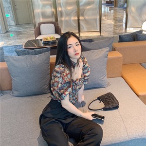 カラースリーブトップス ウェストワイドレッグパンツ ワイドパンツ Xiaofeijia43835184905