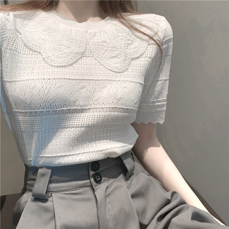 カラーレースセーター トップス レッド 刺繍 大人ガーリー スウィート キュート カジュアル シルク Xiaofeijia50981051345