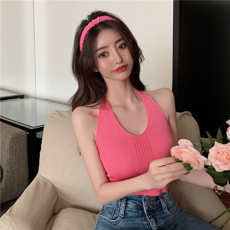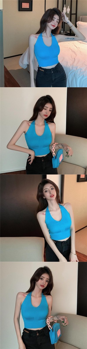 サマーVネックショートスタイルスリムシャツ ニットノースリーブトップス 夏物 Xiaofeijia57560063095