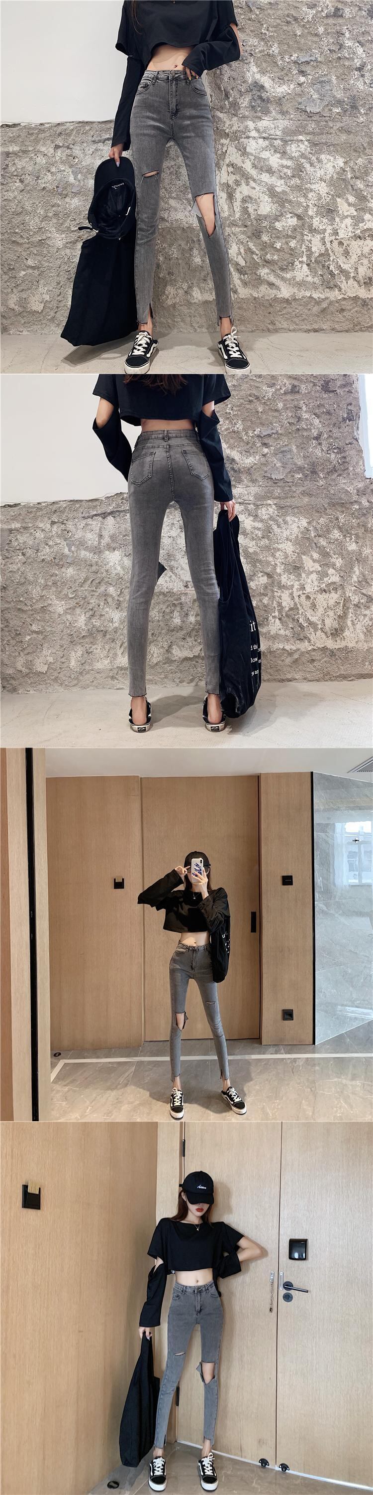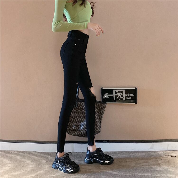 スプリングスキニージーンズ ハイウェスト薄手パンツ レディース レッド 春物 Xiaofeijia76097628163