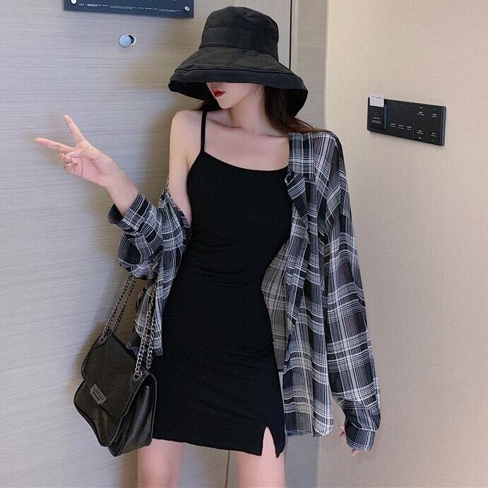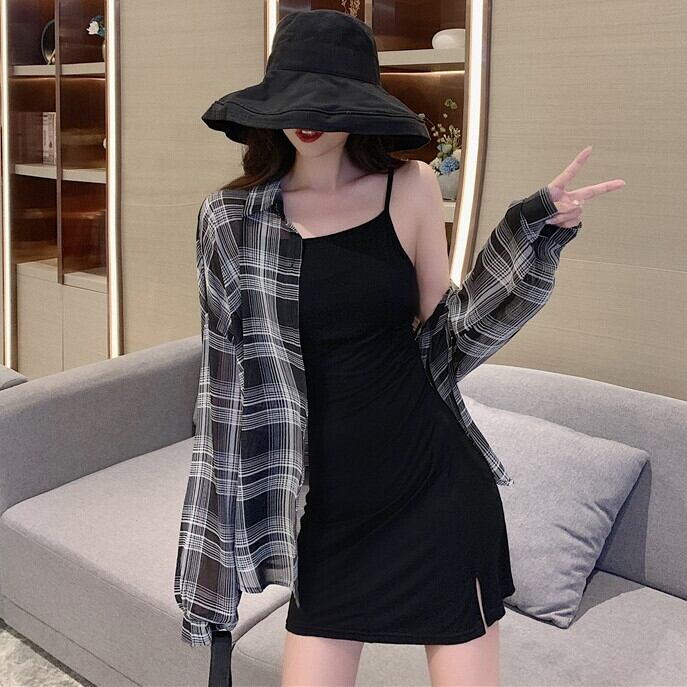スプリングオータムドレス 格子柄シャツ レディース 春物 秋物 Xiaofeijia49184476291