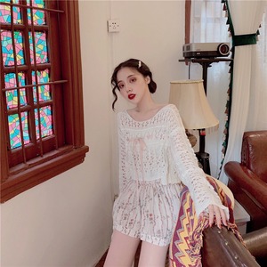サマーセーター ハイウェストショートスカート ロング リボン 夏物 Xiaofeijia19842805614