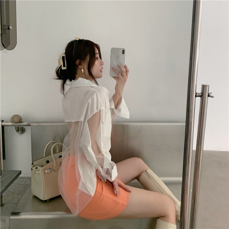 メッシュルーズシャツ ハイウェストウェストスカート ステッチ Xiaofeijia1345471183