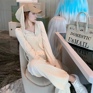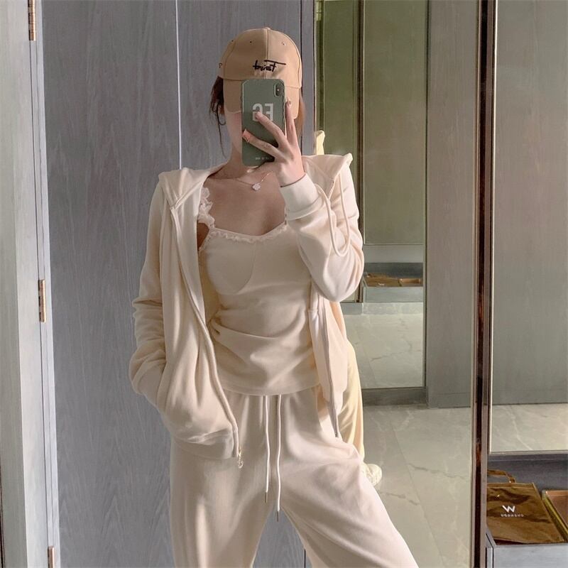 スプリングオータムフードジャケット レースベルベットパンツ レディース 春物 秋物 Xiaofeijia10018409230