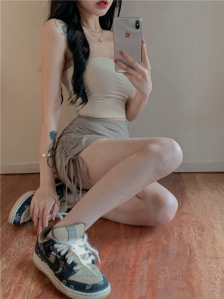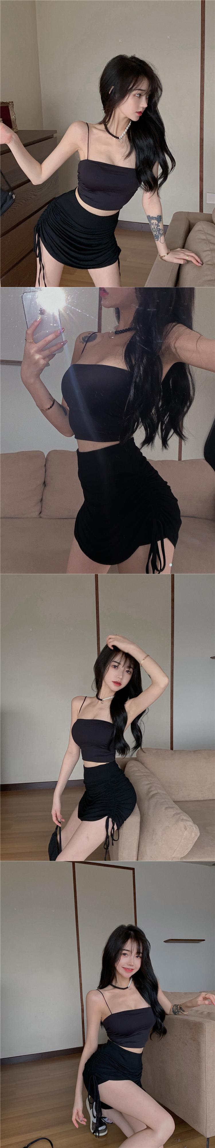 サマーストレッチトップス ハイウェストウェストプリーツショートスカート エラスティック 伸縮 夏物 アジャスタブル Xiaofeijia18883451734