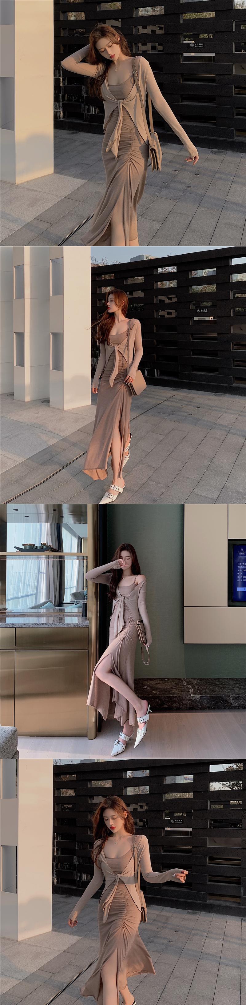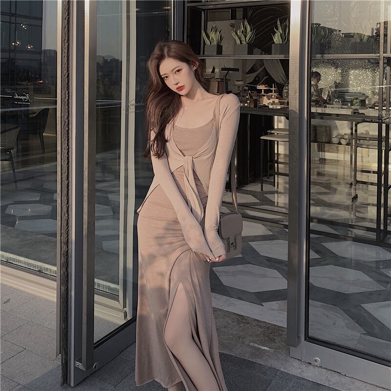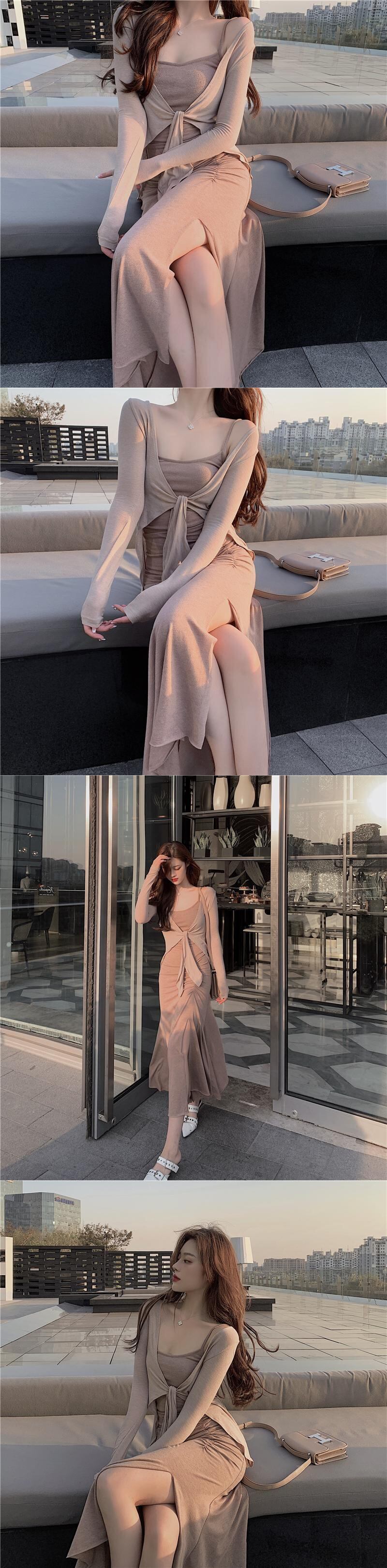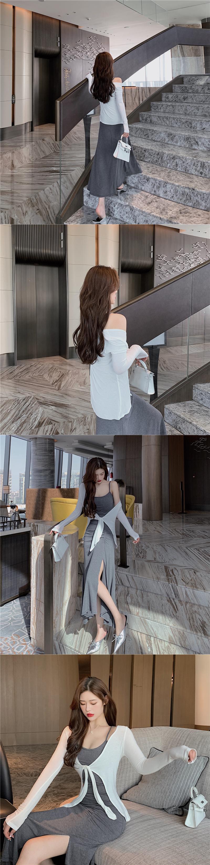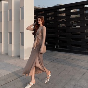 色:ヌードコート,ラテカラーサスペンダードレス,白いコート,スモークグレーサスペンダースカート
