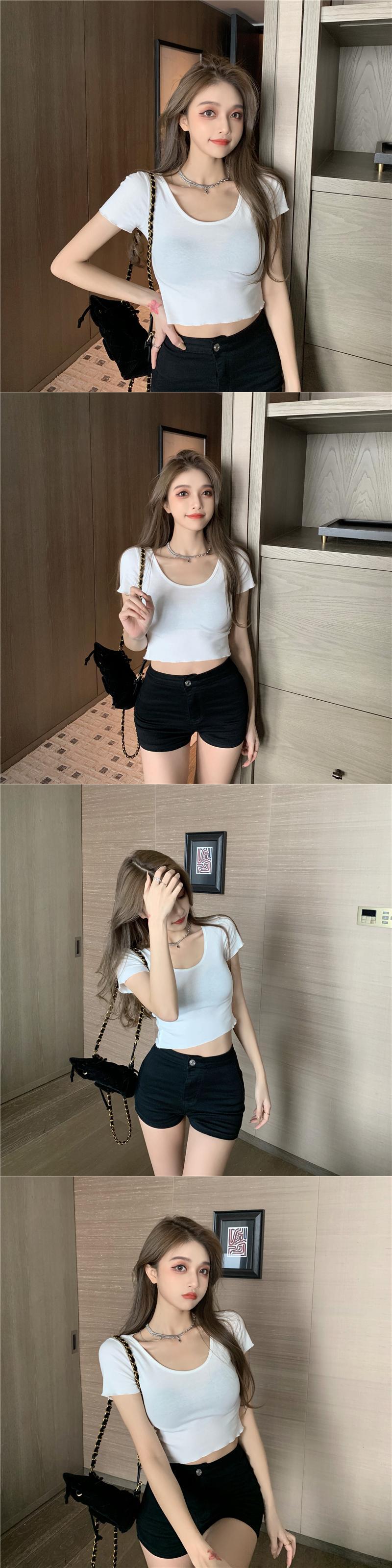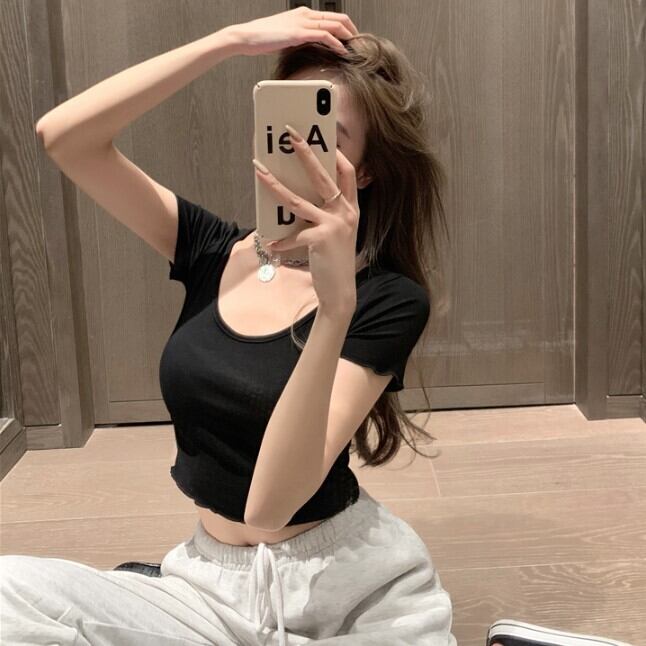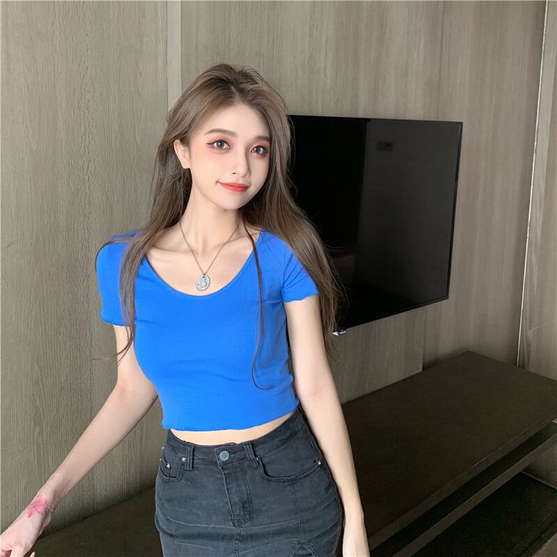 Tシャツ シャツ サマースリムショートトップス ソリッド カラー 夏物 ソリッドカラー Xiaofeijia50730082135