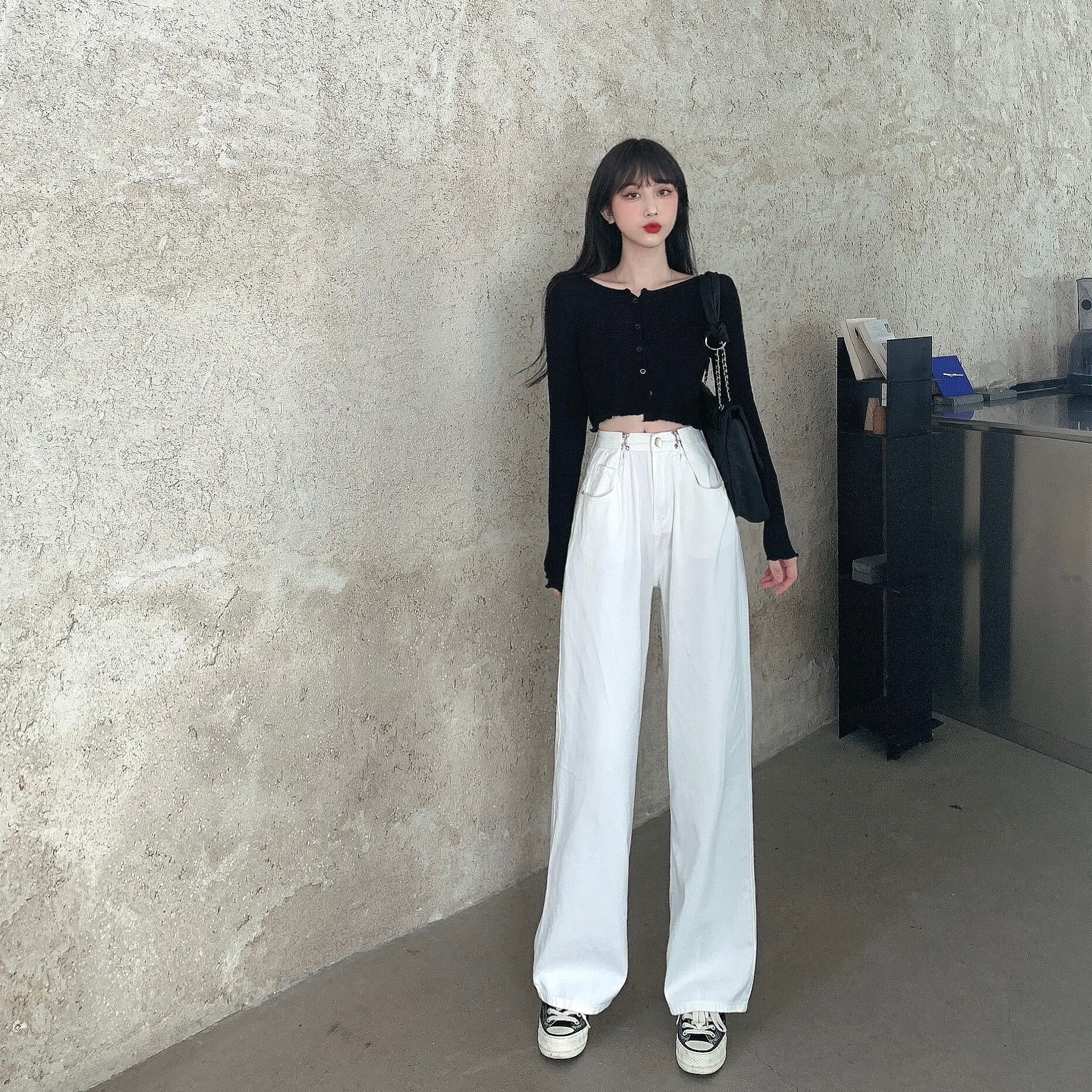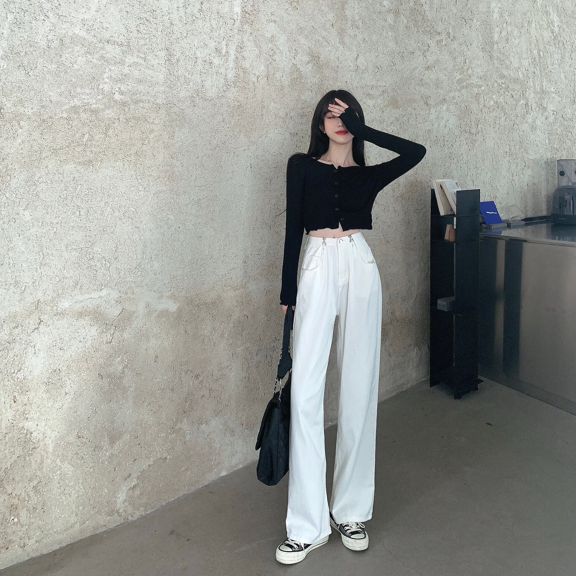 ホワイトジーンズ ハイウェスト薄手パンツ Xiaofeijia80882365044
