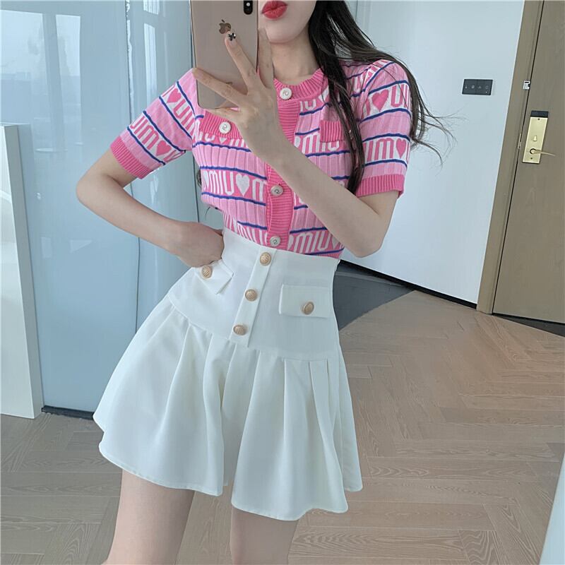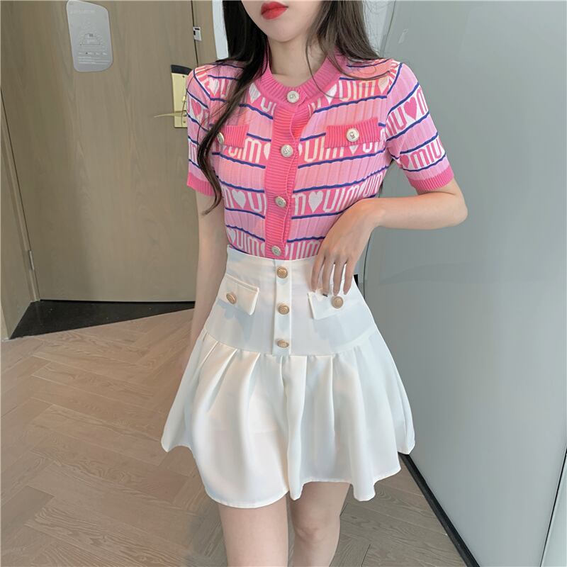 サマー薄手カラーニットカーディガントップス パウダー 夏物 Xiaofeijia45180503905