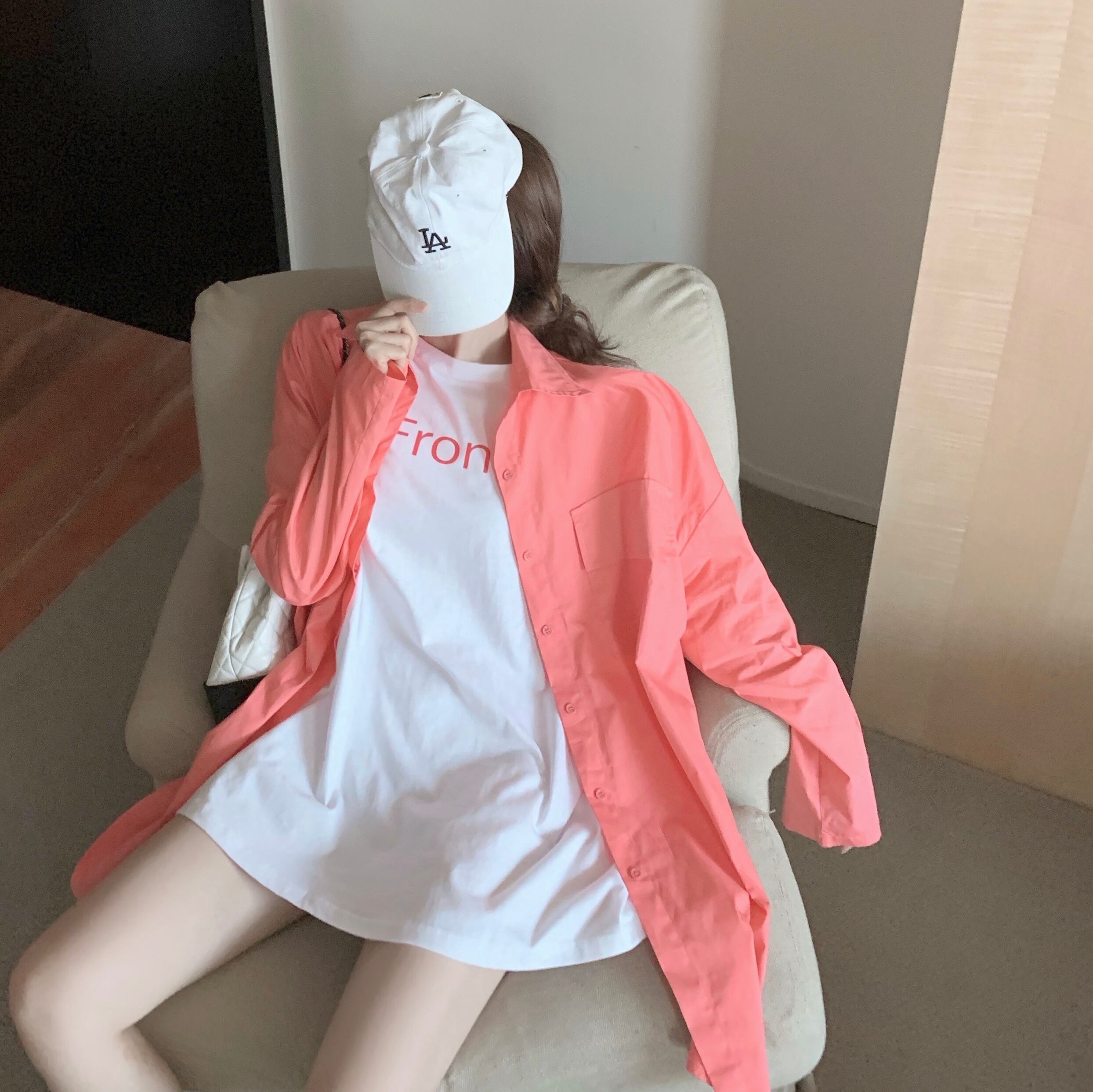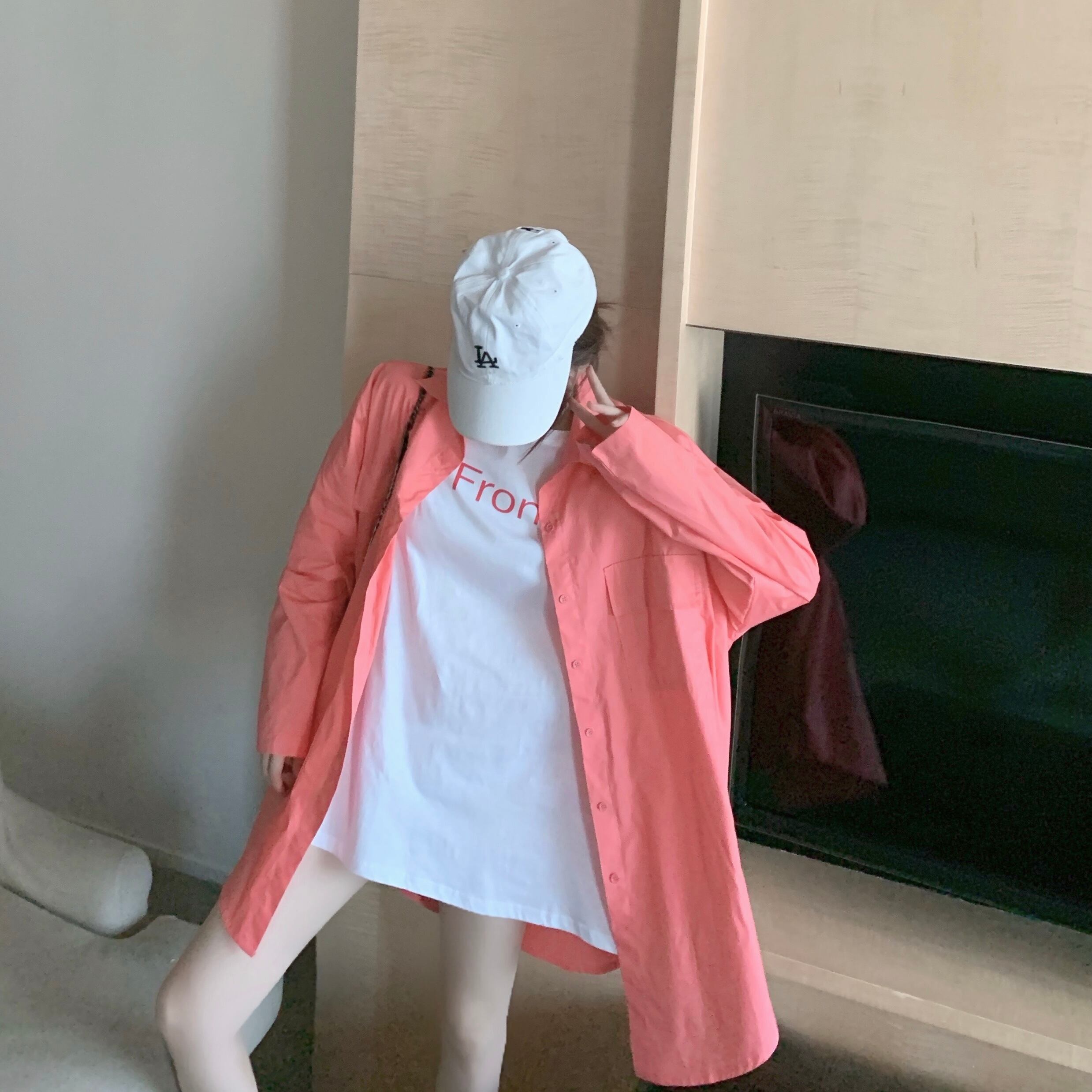 スタンダードシャツ ジャケット スプリングルーズTシャツ ピンク レッド レトロ 春物 Xiaofeijia71595896010