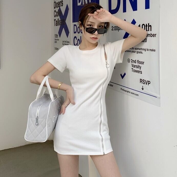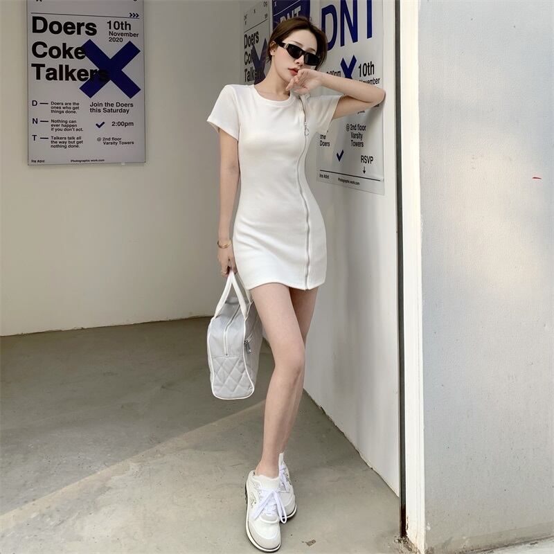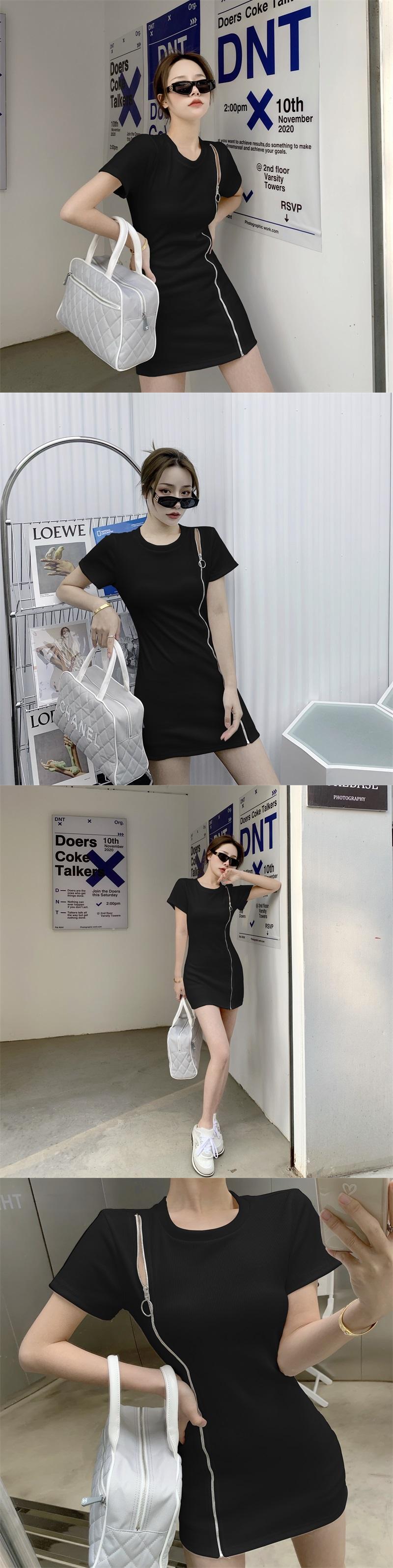 ドレス サマージッパーラウンドネックスリムウェストTシャツ スカート 夏物 Oネック Xiaofeijia76751651572