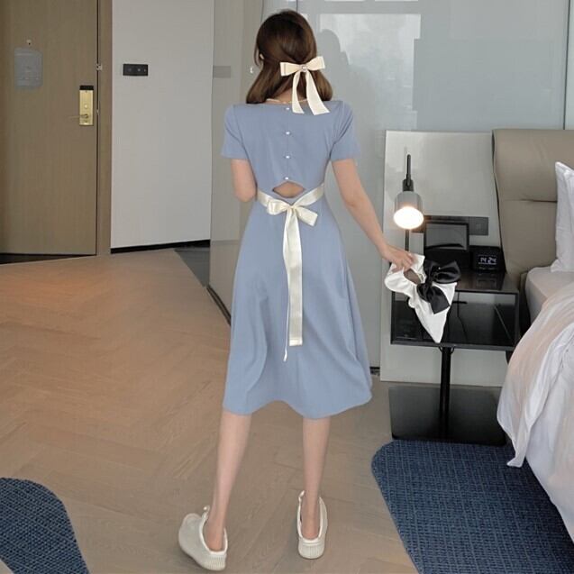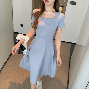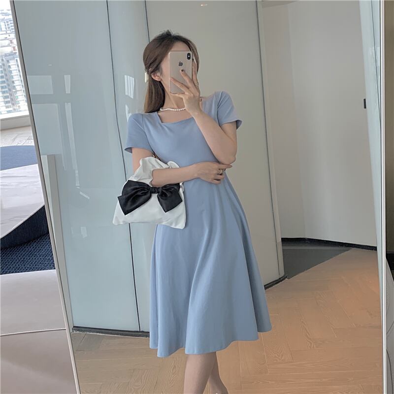 Aラインスカート 薄手サマーカラーバックドレス 夏物 スクウェア Xiaofeijia18214465599