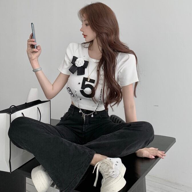 ショートTシャツ シャツ サマーラウンドネックトップス スリム 夏物 Oネック Xiaofeijia66007648503