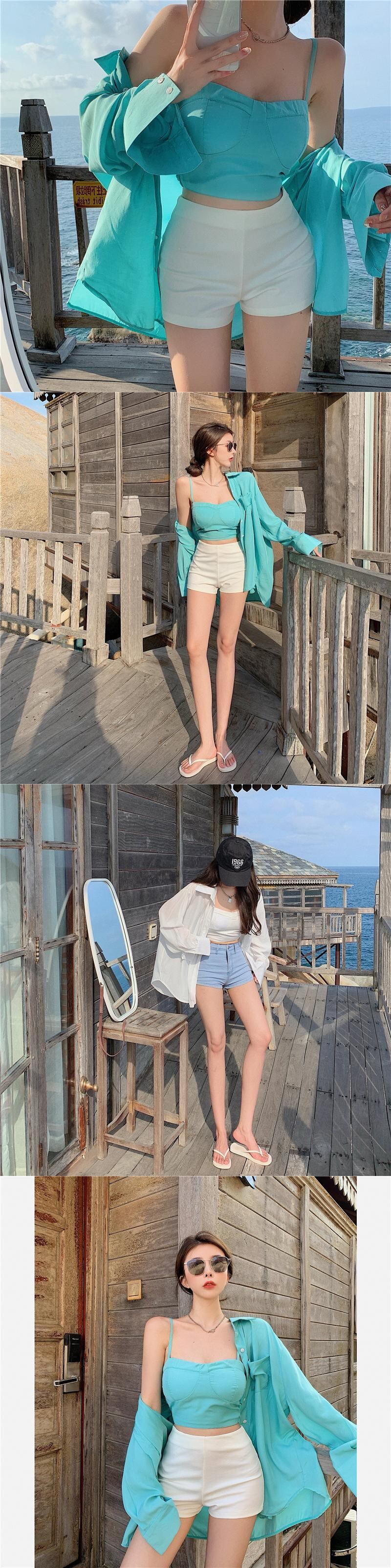 色:青いスリング,ホワイトサスペンダー,青いシャツ,白のシャツ