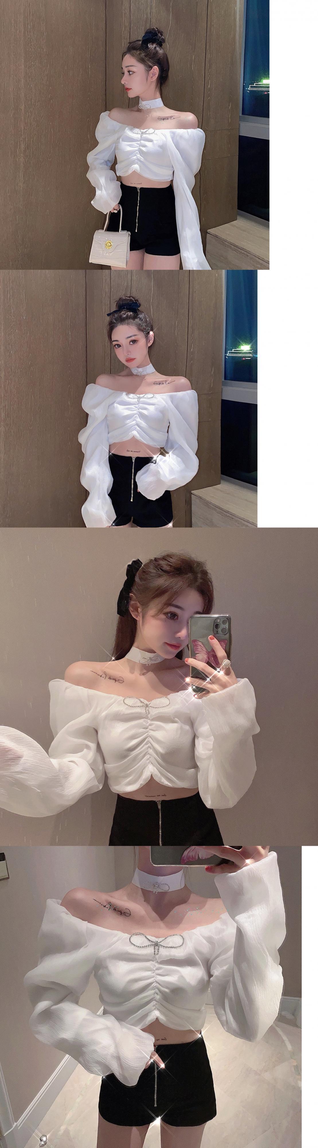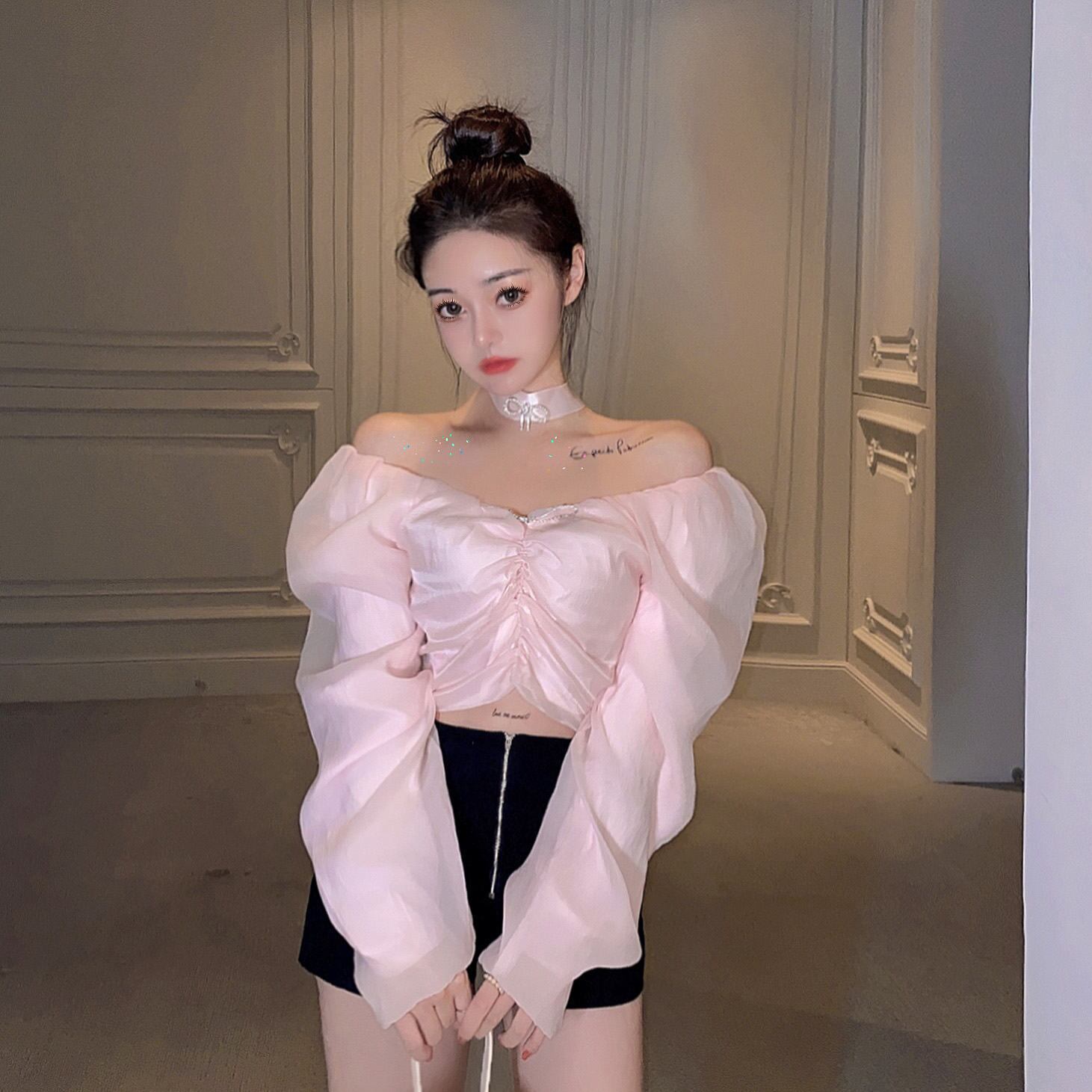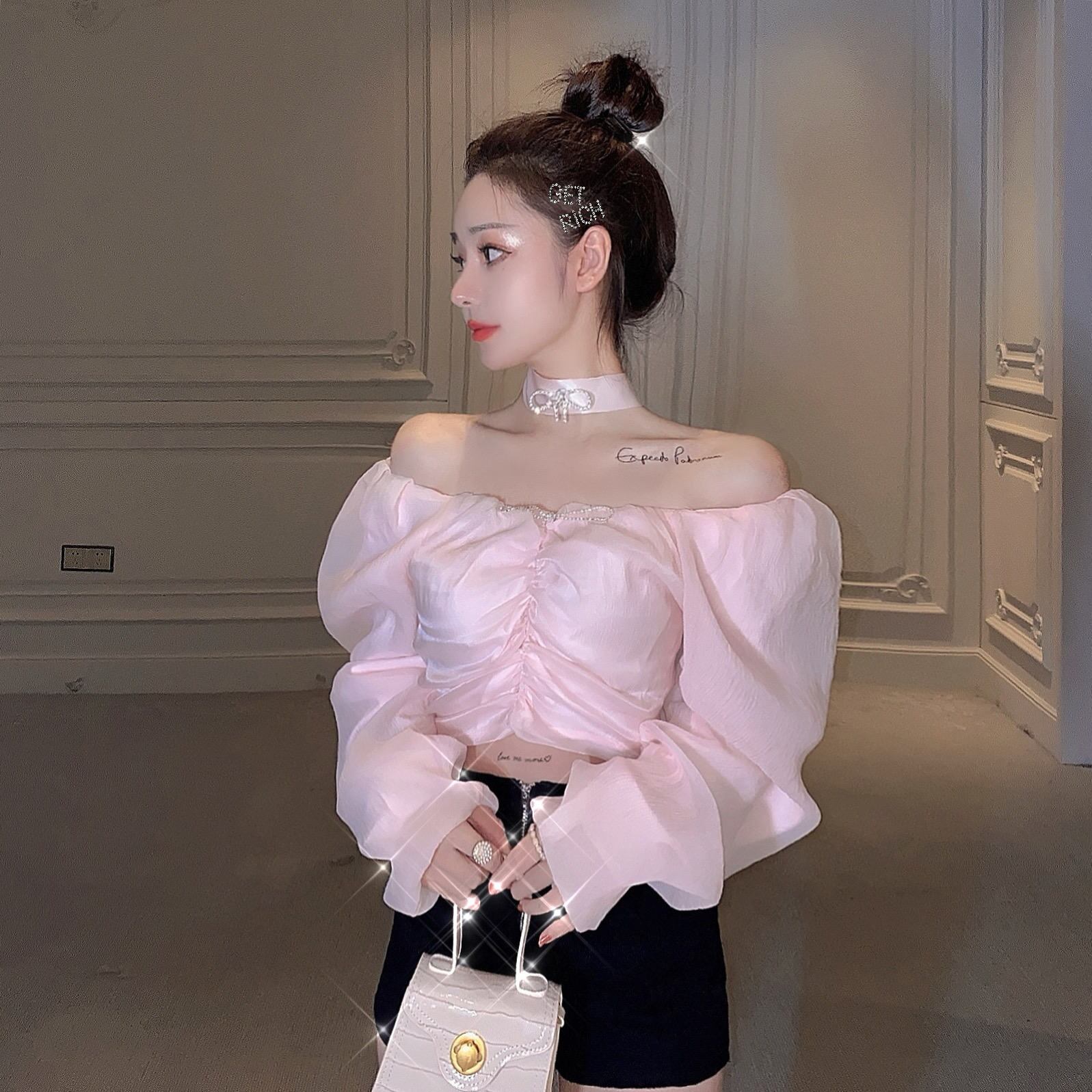 スリーブシフォンシャツ ブラウス ネックレス レース Xiaofeijia6950436594