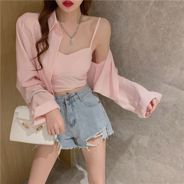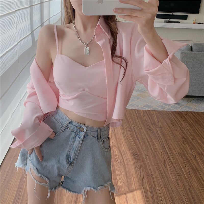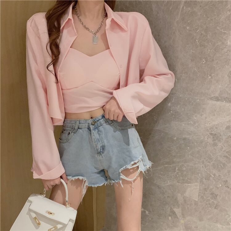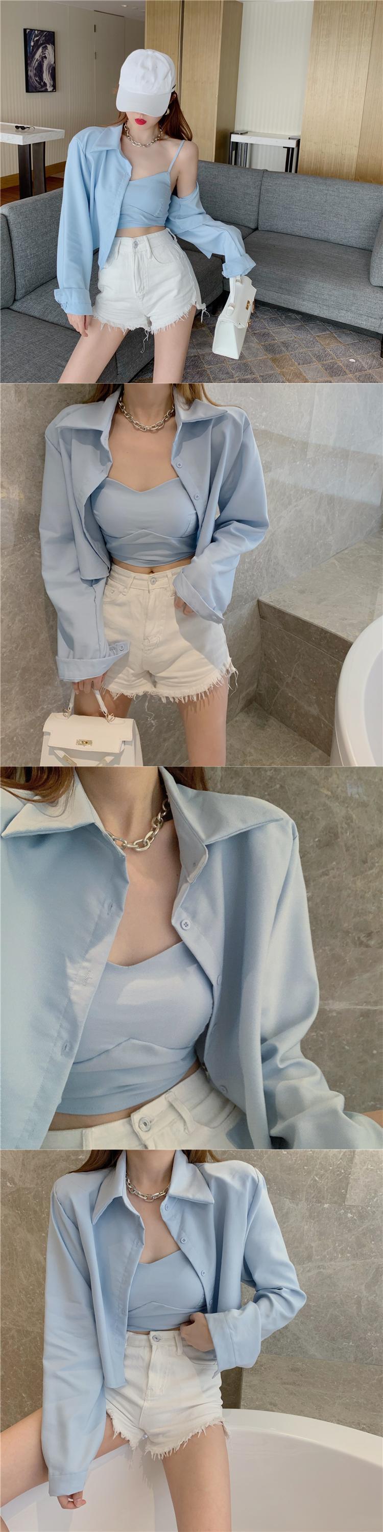 スタイルカジュアルショートシャツ カラーVネックレディースサマー ロング 夏物 Xiaofeijia90206626362