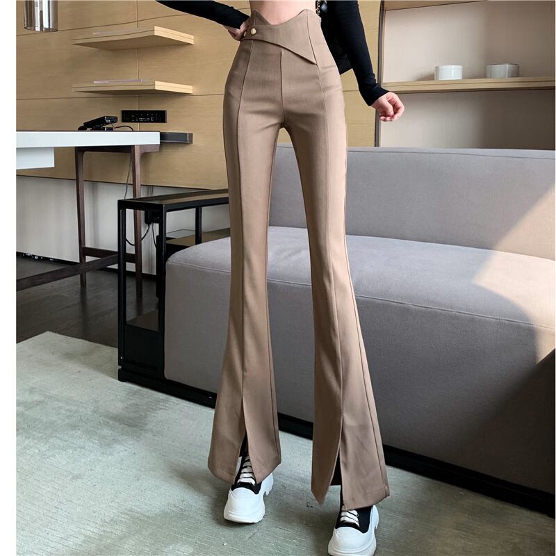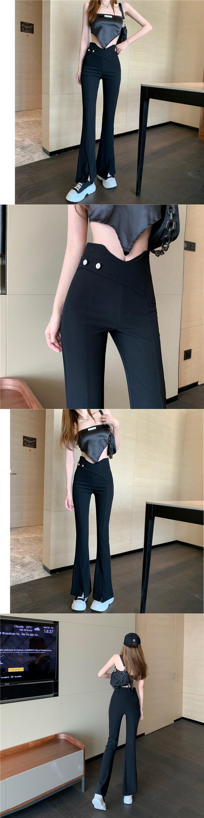 サマースリットパンツ 薄手ハイウェストカジュアル レッド 夏物 Xiaofeijia73656732707
