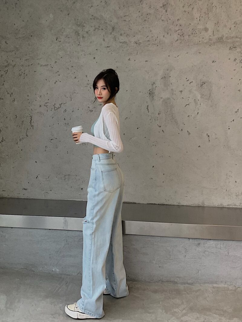 ウェストワイドレッグジーンズ 薄手ルーズカジュアルパンツ ワイドパンツ Xiaofeijia1662685624