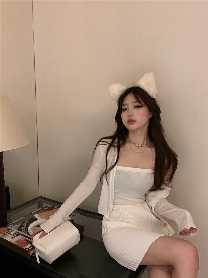 サマートップス ニットプリーツドレス スリムカーディガン 夏物 Xiaofeijia52845937411