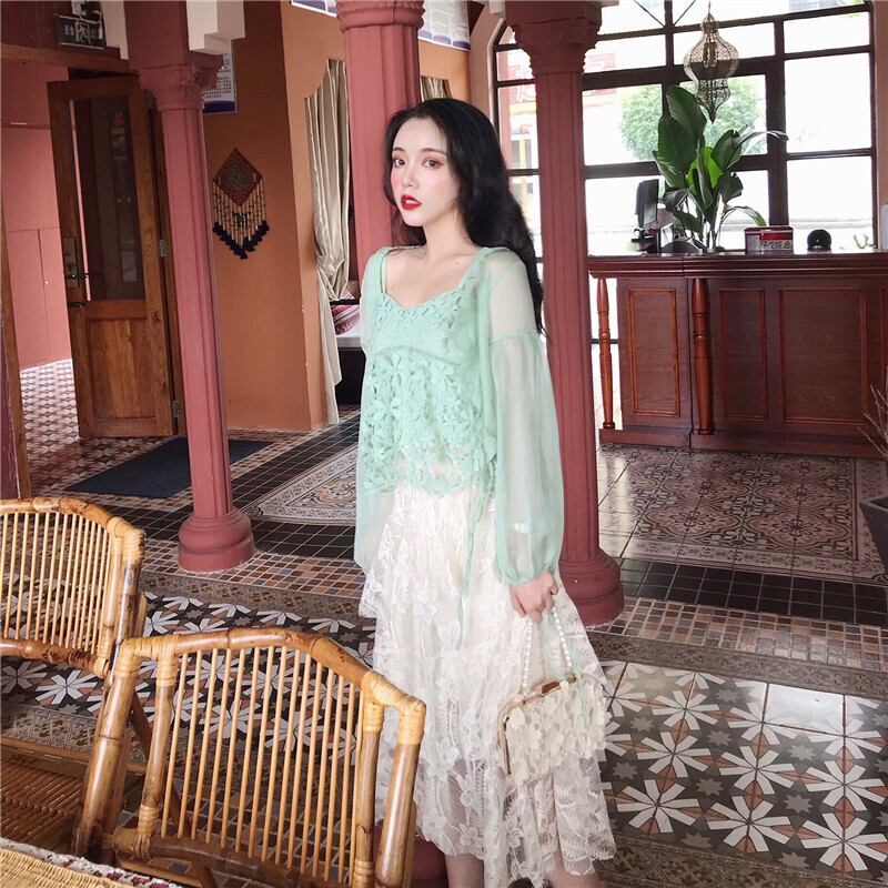 レーススカート スリーブシャツ ランタンスリーブ Xiaofeijia45763202082