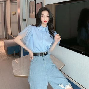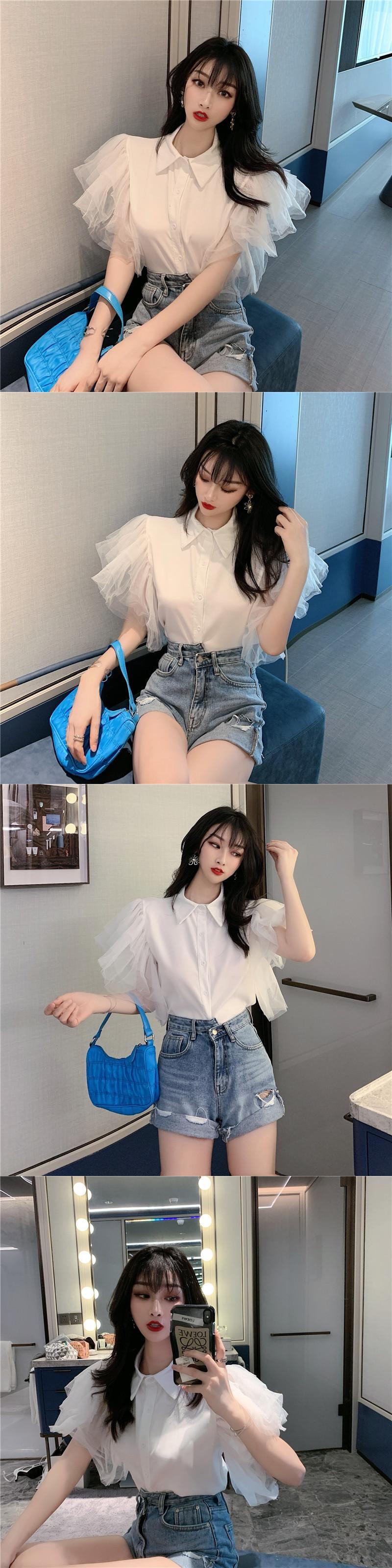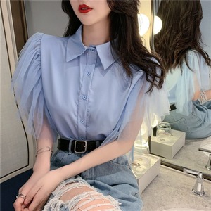 サマーメッシュノースリーブトップス カラーソリッド シャツ 夏物 ソリッドカラー ステッチ Xiaofeijia27642968082