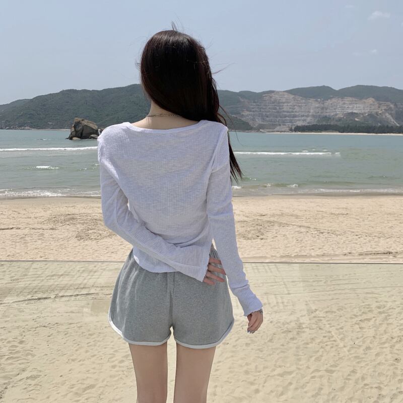 ショートTシャツ シャツ ハイウェストウェストスリムトップス ロング Xiaofeijia50040944973