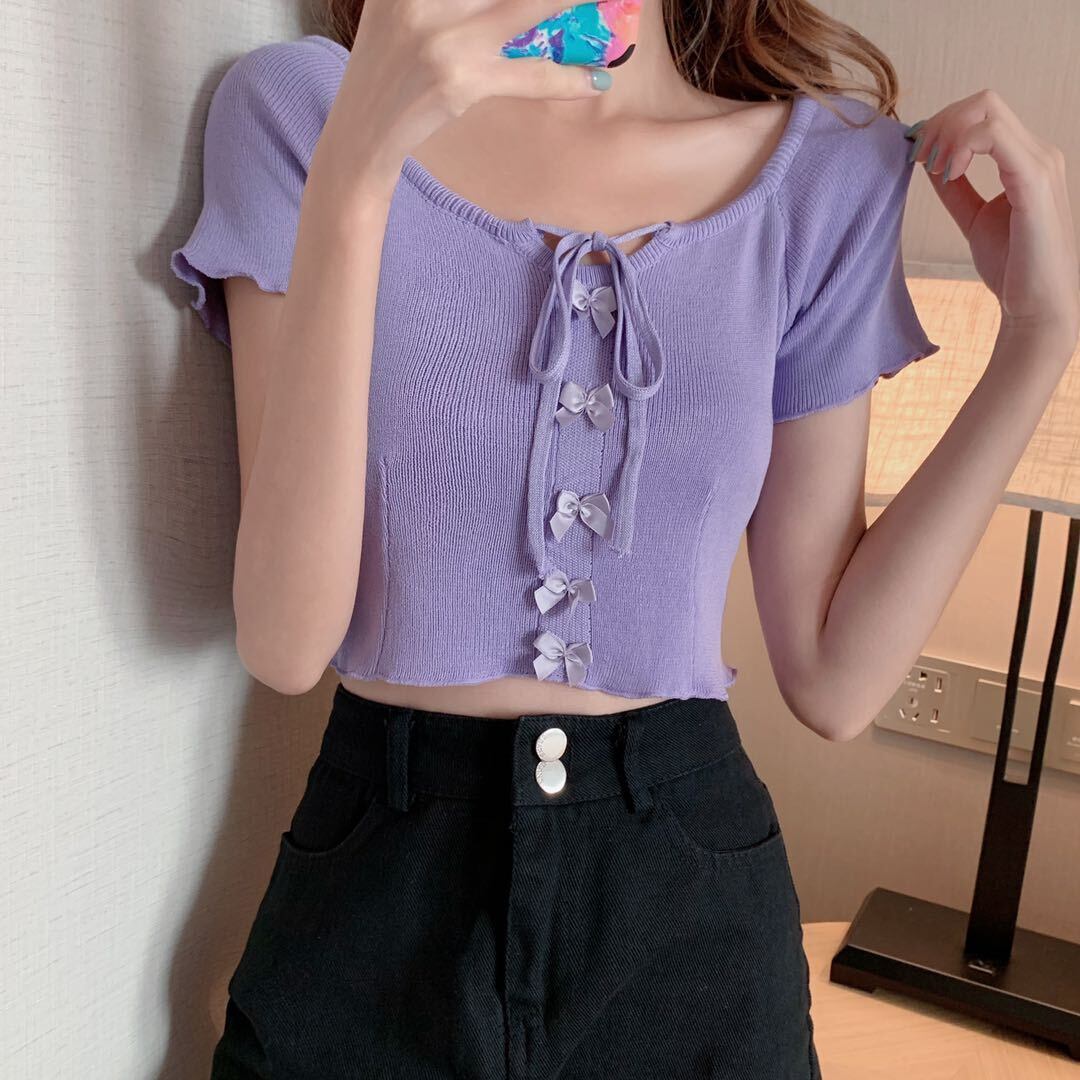 スタイルButterflyデザイン ショートニットセーター レース レースアップ Xiaofeijia64005867634