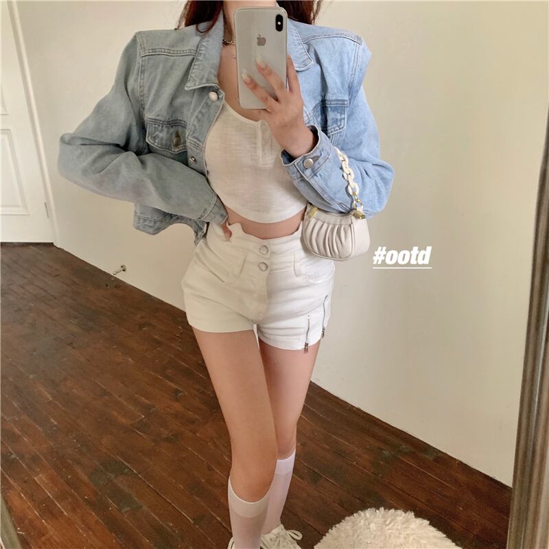 スタイルサマーショートジャケット ジッパーホワイトショーツ シャツ 夏物 ブルマー Xiaofeijia24154933148