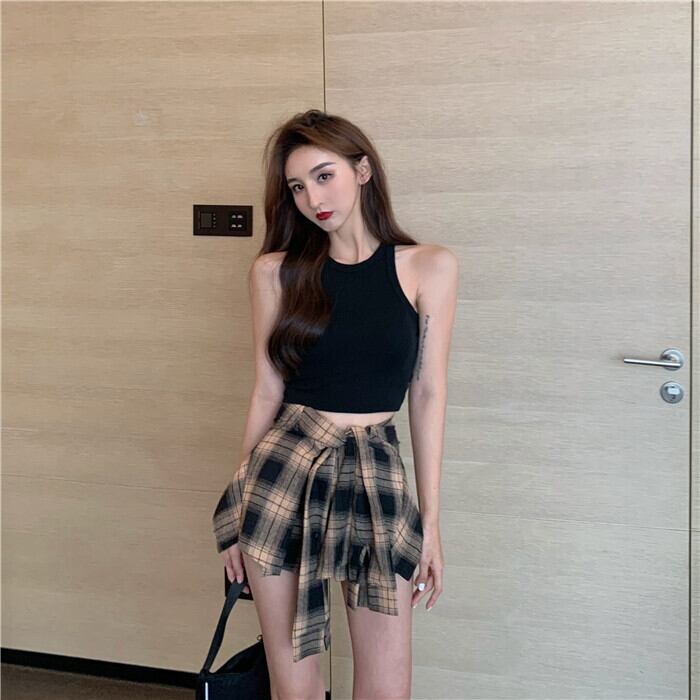 格子柄ウェストスカート ショーツ ホルター ブルマー Xiaofeijia23442169344