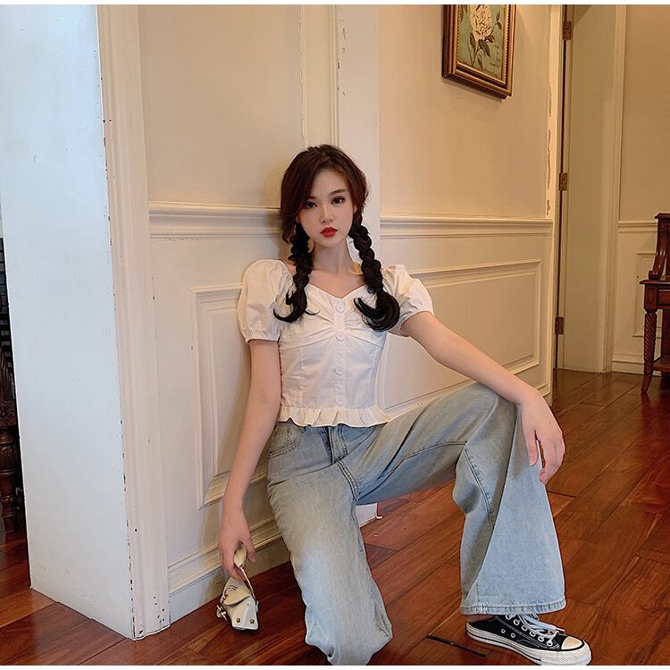 Vネックスリーブシャツ ショートトップス Xiaofeijia91217632785